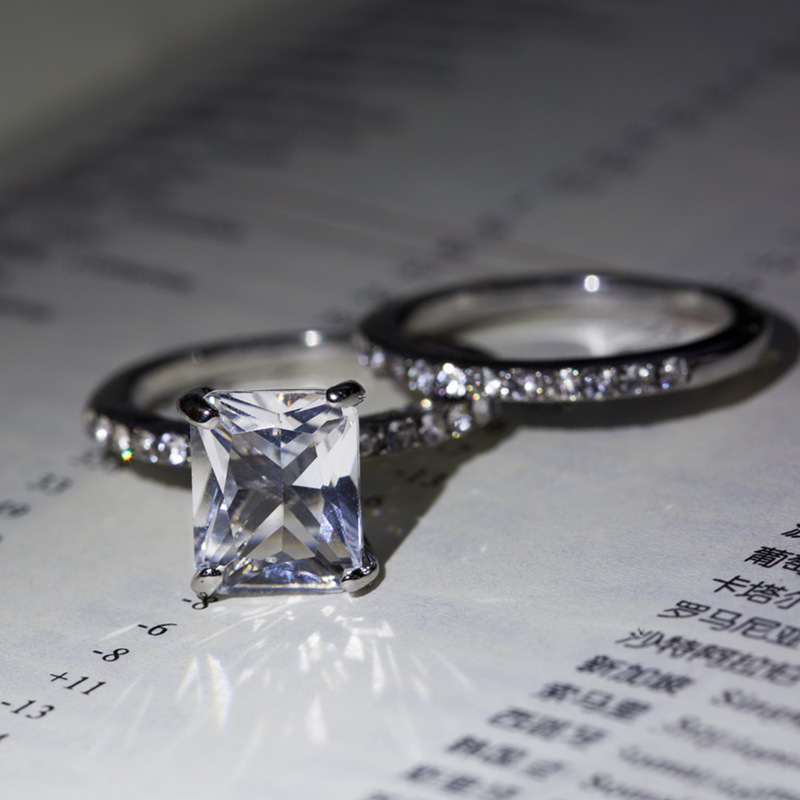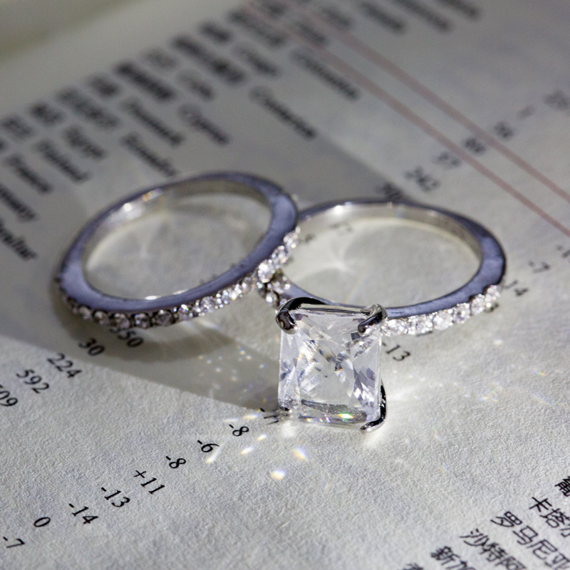 Hot selling new princess square ring European and American hot style inlaid zircon women's jewelry engagement proposal ring