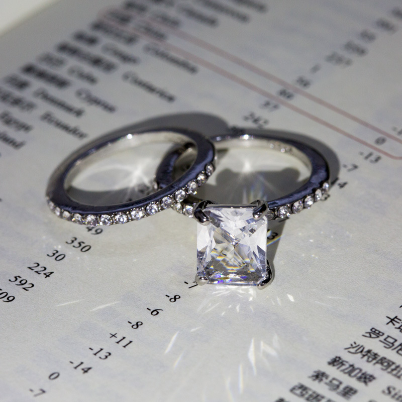 Hot selling women's rings, large simulated diamond rings, engagement wedding rings, silver-plated rhinestone hand jewelry