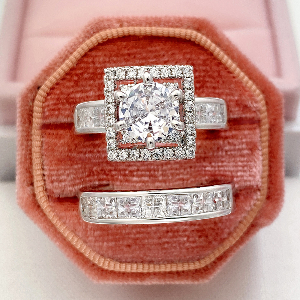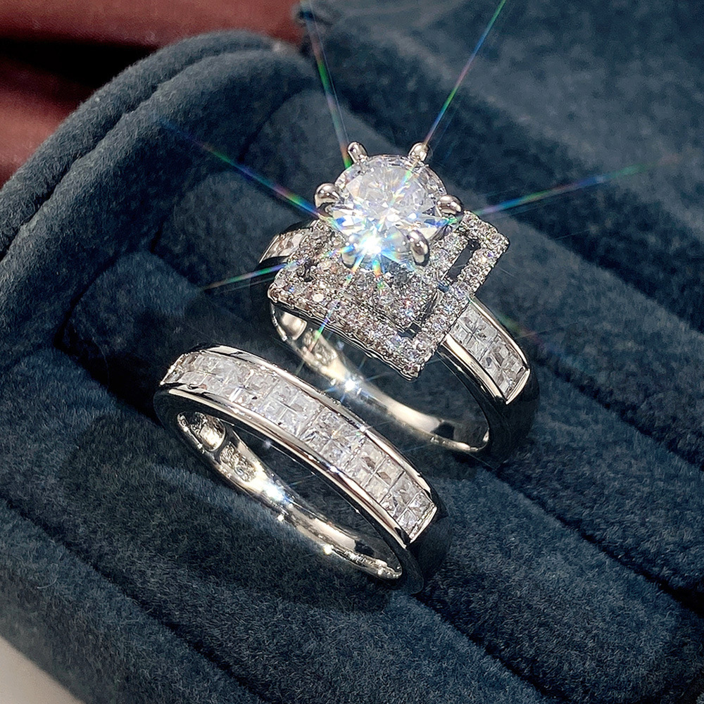 Hot selling zircon couple ring wholesale European and American popular luxury double set ring high-end hot selling jewelry