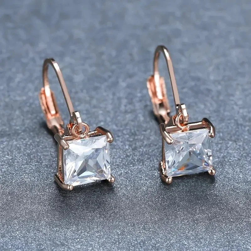 Hot selling zircon earrings in Europe and America, fresh design, geometric square earrings, simple and elegant earrings for women