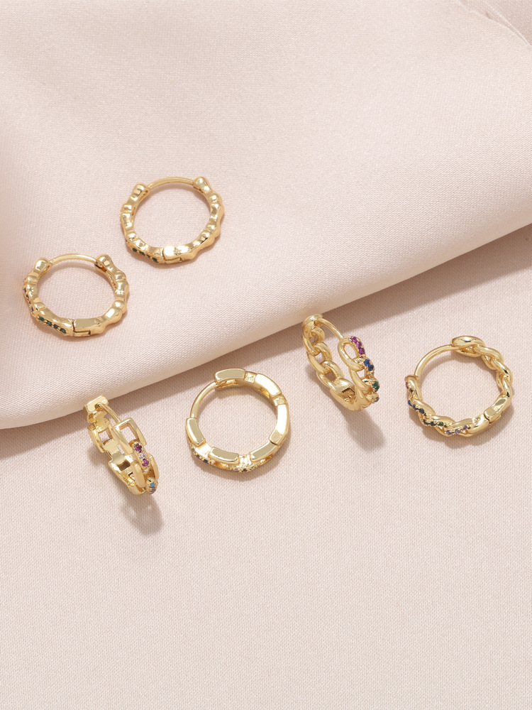 Hot style fashion simple color zircon earrings female European and American all-match round gold-plated earrings earrings erw51