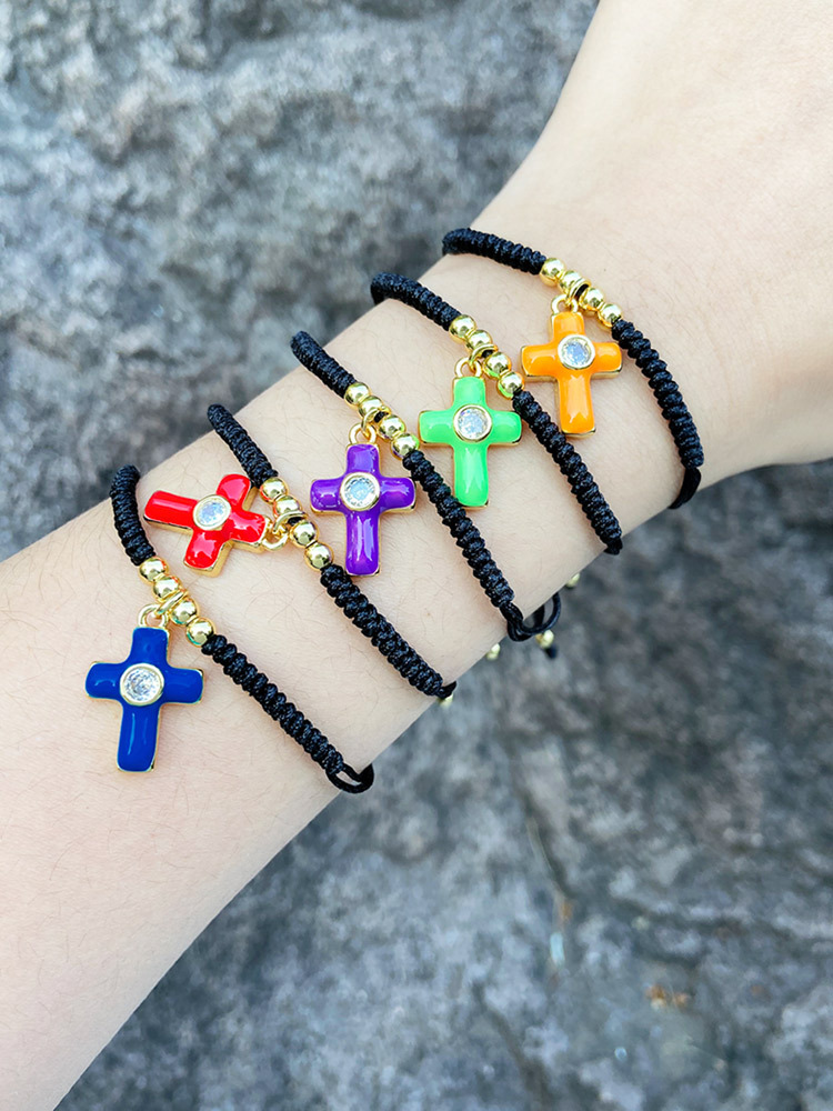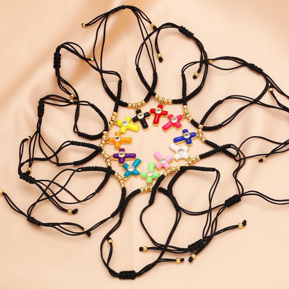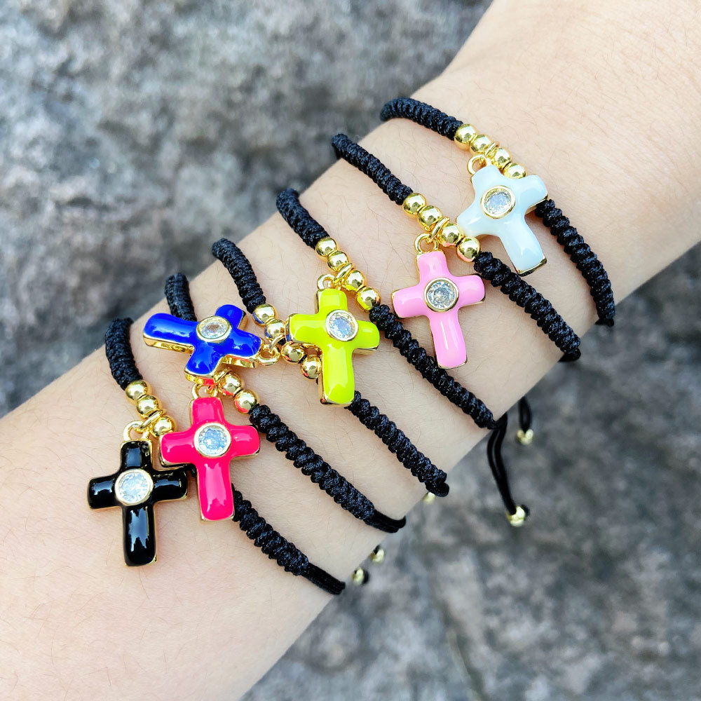 Hot style simple fashion cross bracelet female niche design retro oil drop inlaid zircon bracelet brm17