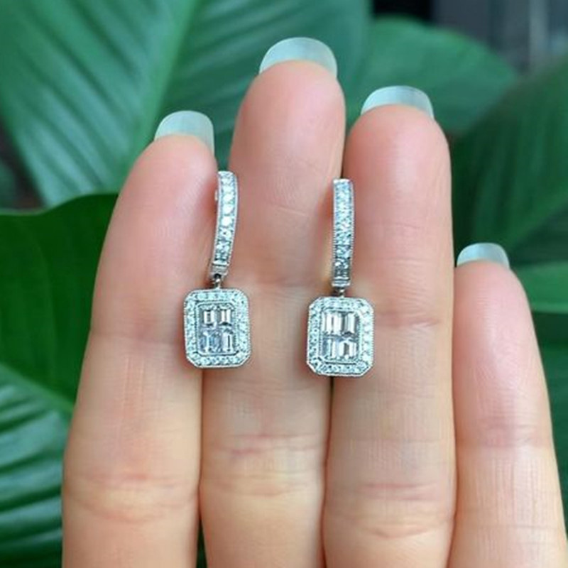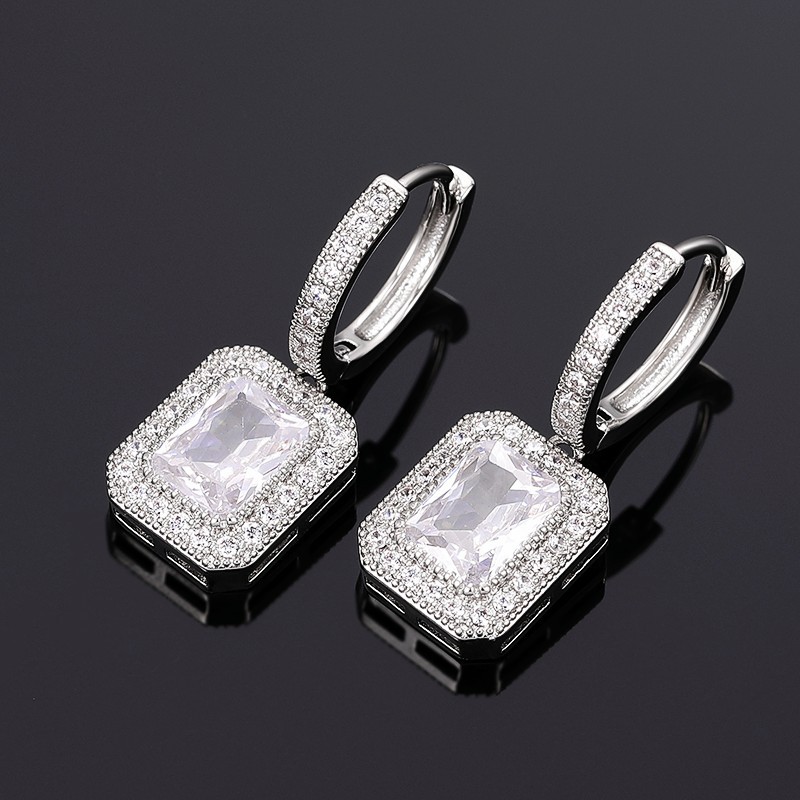 Imitation Moissanite new earrings high-end princess square diamond earrings celebrity Korean temperament evening party earrings female