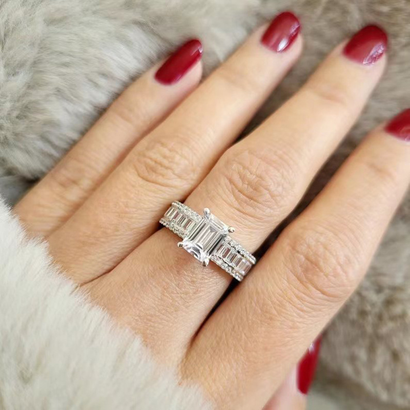Imitation Moissanite Sugar Cube Ring Women's Love at First Sight Simple Fashion Jewelry Princess Square Diamond Women's Ring