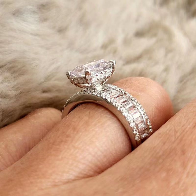 Micro-inlaid celebrity style classic all-match popular ring six-claw zircon wedding ring European and American style light luxury ring