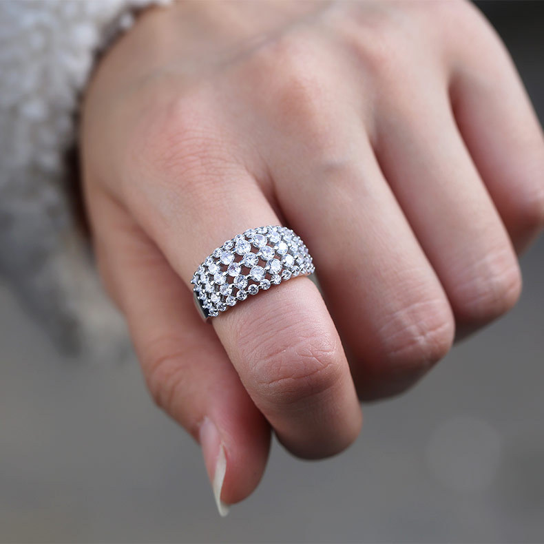 Micro-inlaid celebrity style classic all-match popular ring six-claw zircon wedding ring European and American style light luxury ring