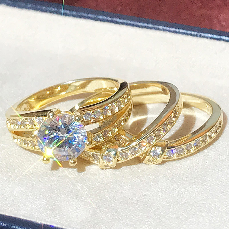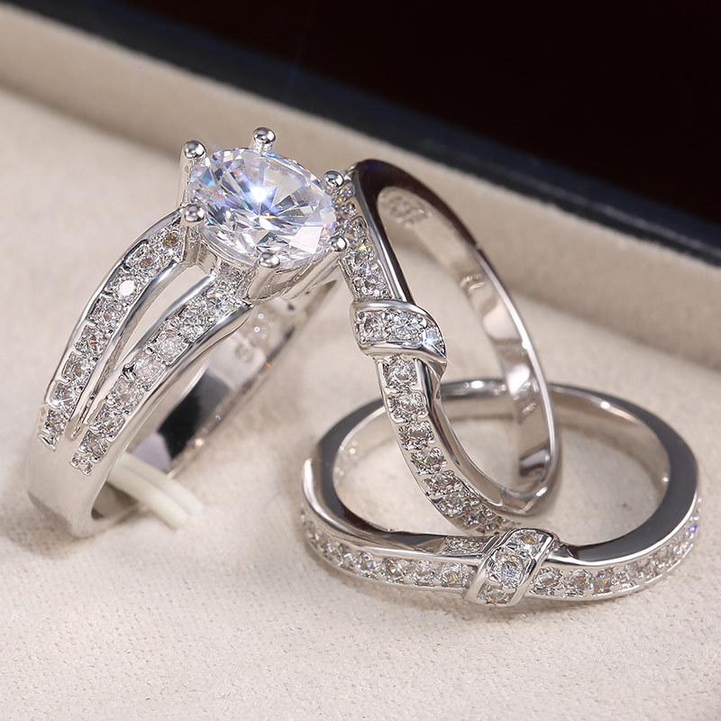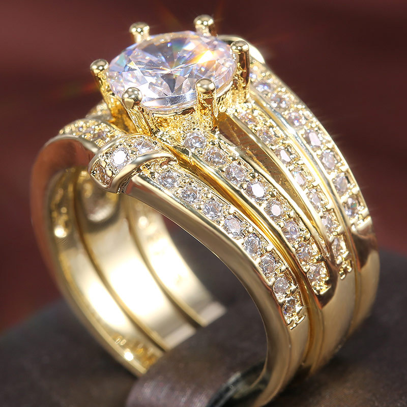 Independent station hot selling new European and American exaggerated fine inlaid zircon three-piece ring jewelry factory wholesale
