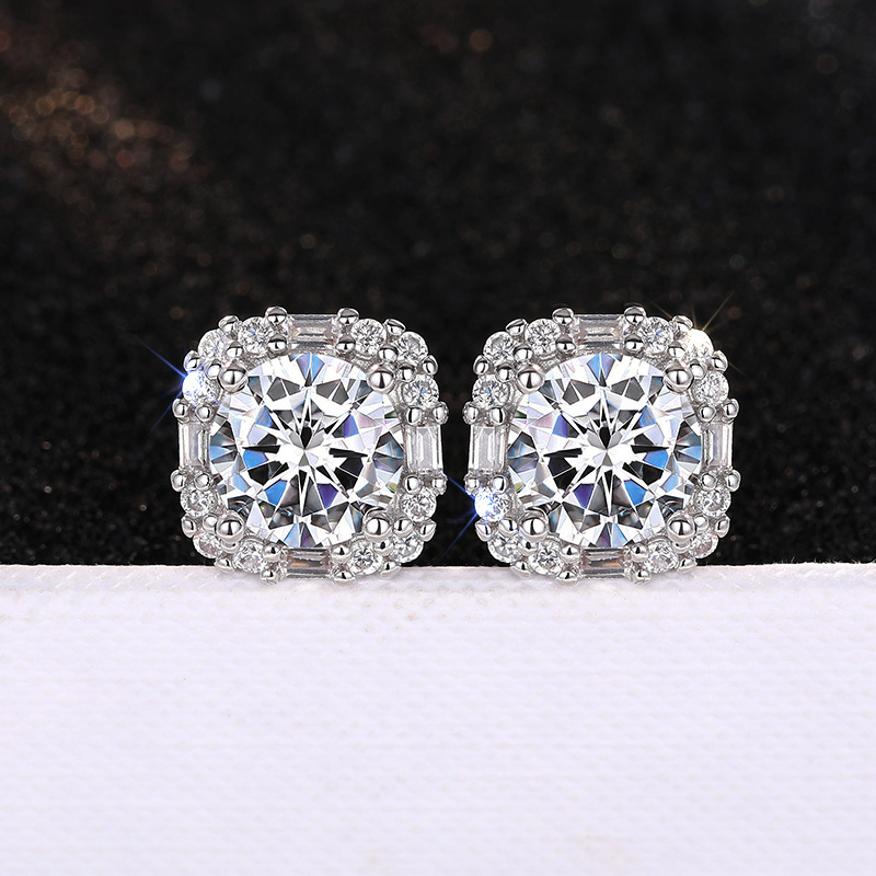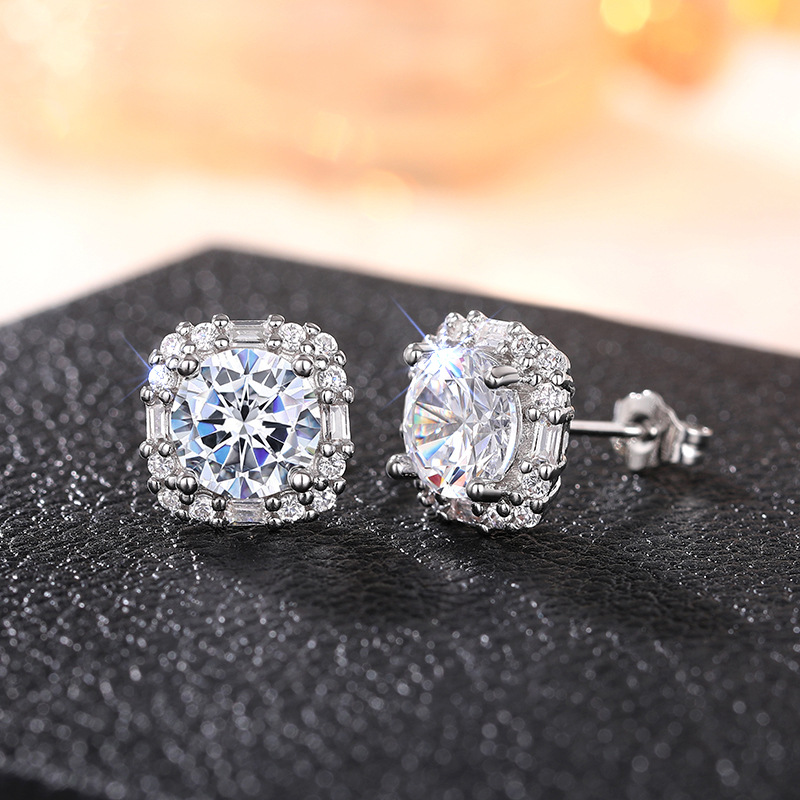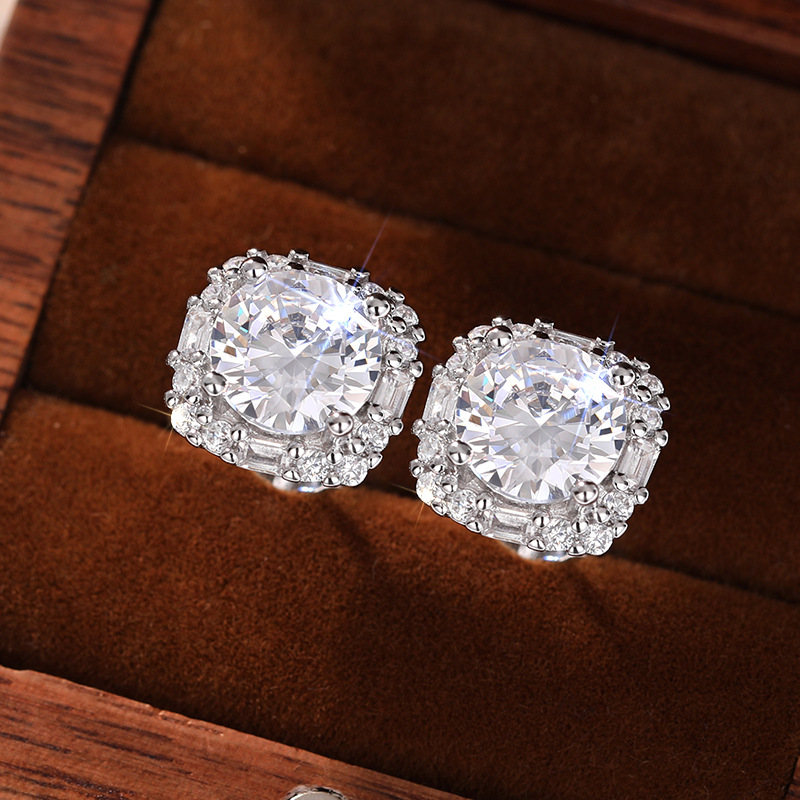 Inlaid with zircon sparkling geometric earrings women's fashion light luxury banquet engagement earrings European and American hot style