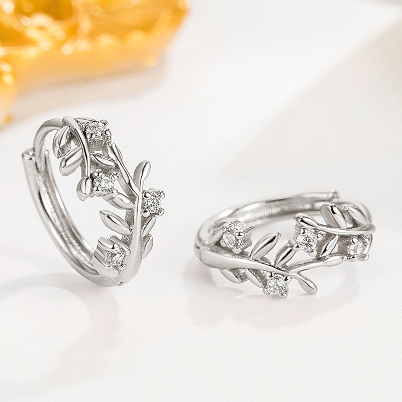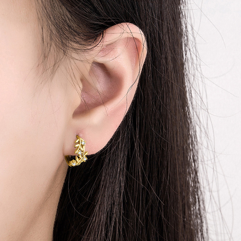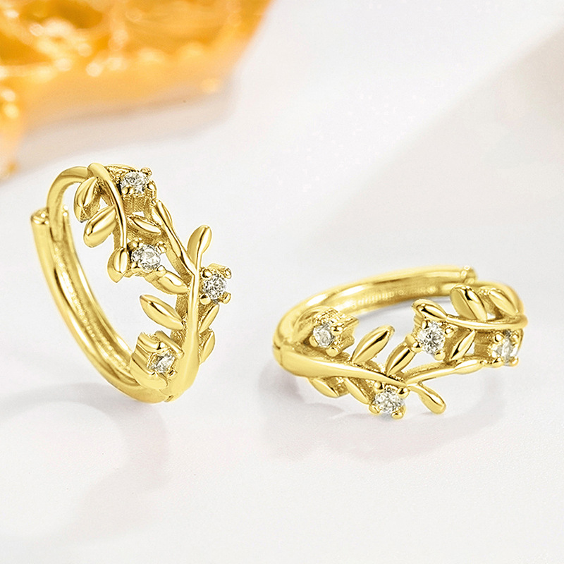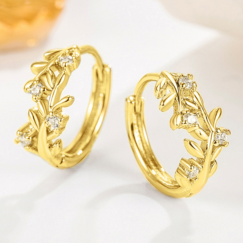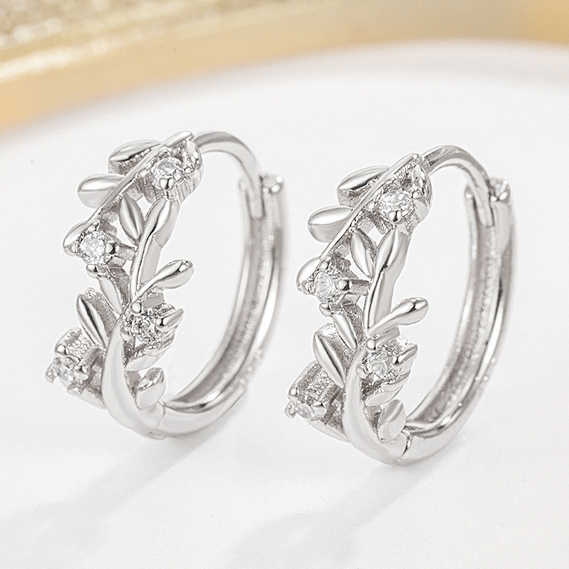 Inlaid zircon earrings for women, leaf geometry, exquisite jewelry, daily ladies' jewelry