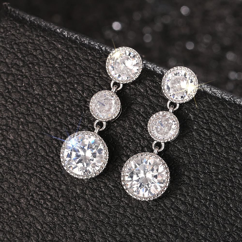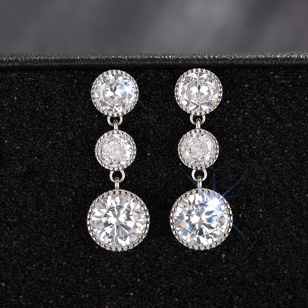 Inlaid zircon geometric earrings for women, fashionable, elegant, light luxury design, suitable for engagement parties
