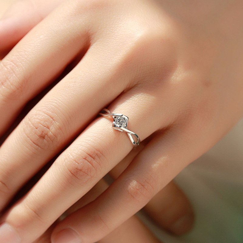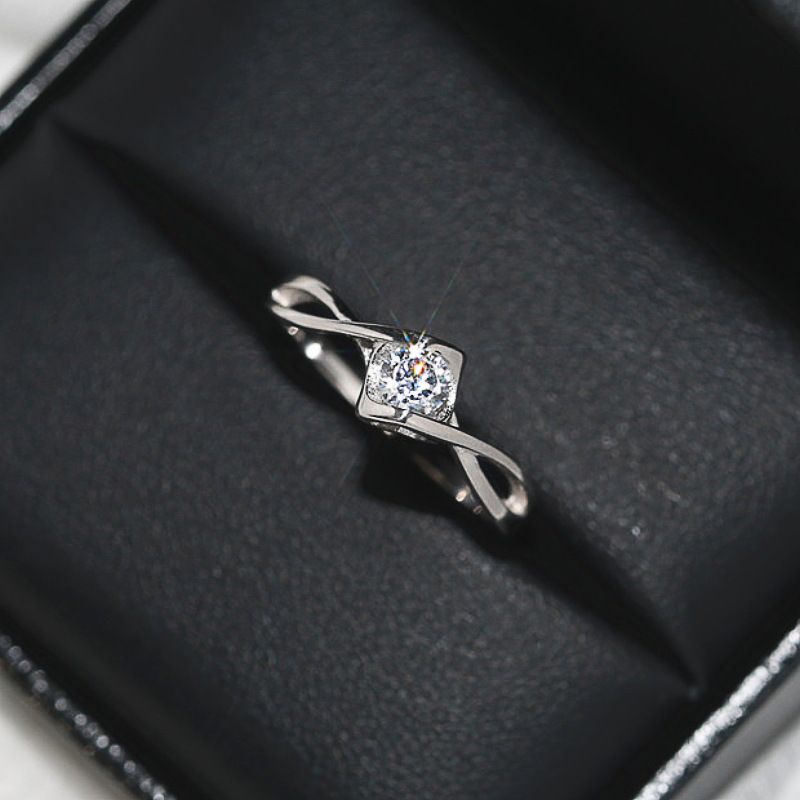 New zircon ring hollow cross four claws fashion design proposal wedding ring birthday gift ring