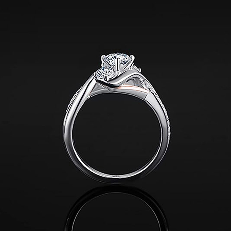 Classic four-claw imitation zircon micro-inlaid ring women's double row two-color twist arm ring engagement wedding ring women