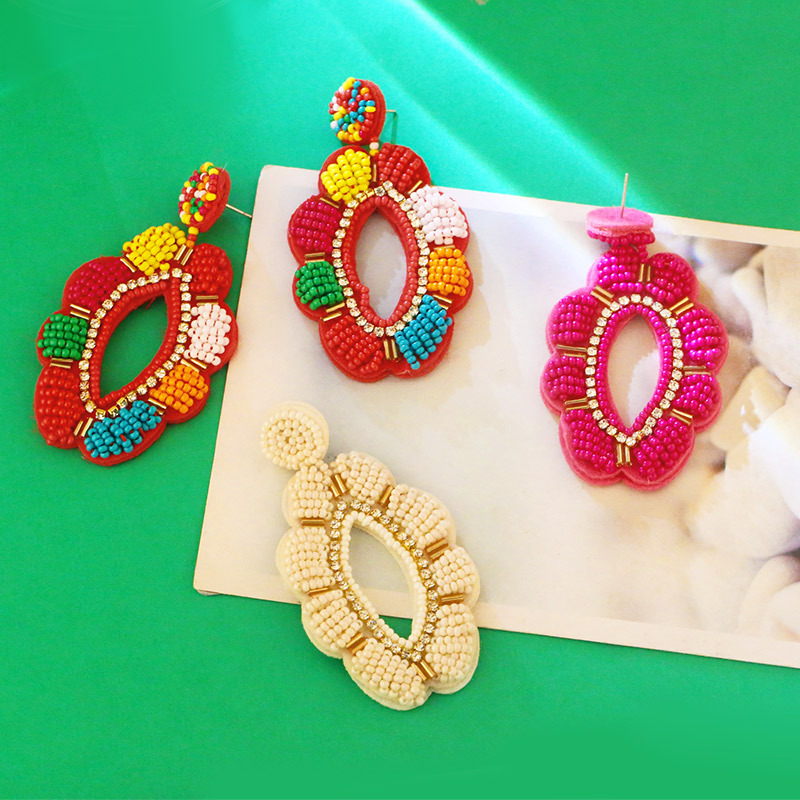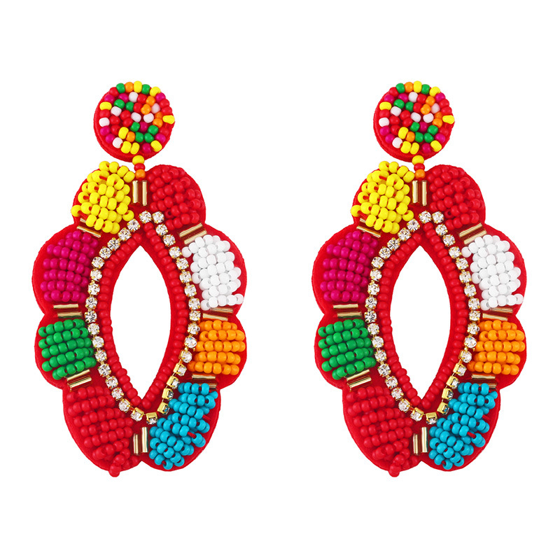 INS ethnic style earrings women's handmade beaded colored rice beads Bohemian tassel earrings European and American earrings erx91