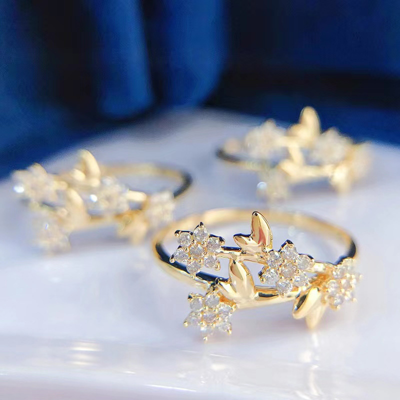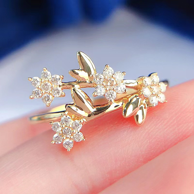 New best-selling super flash ring tree branch bud four-claw inlaid ring light luxury wedding ring for girlfriend