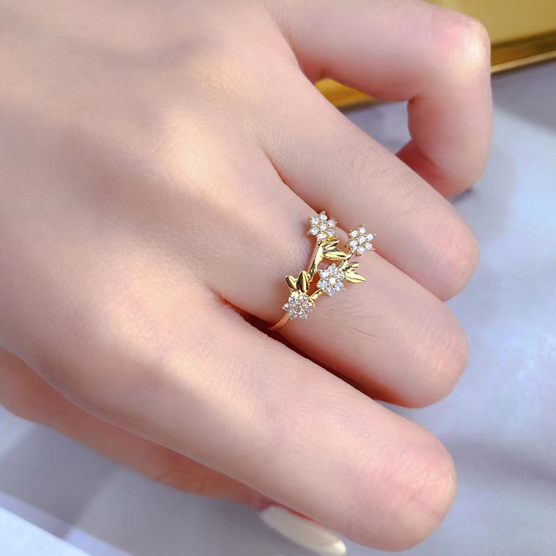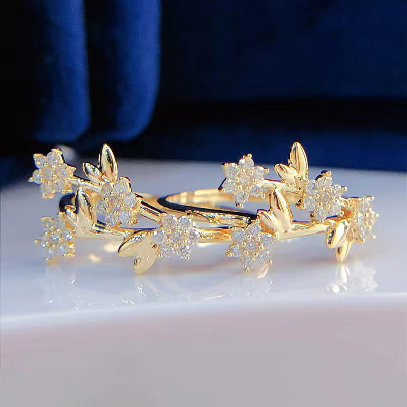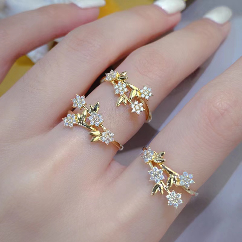 Internet celebrity Japanese and Korean personality ring plant flower sweet food ring flower micro inlaid zircon ring