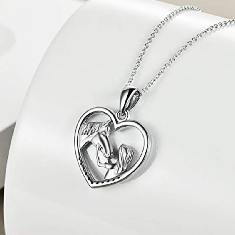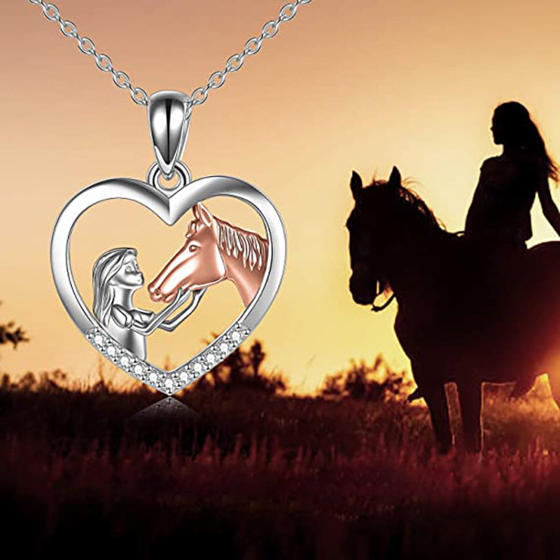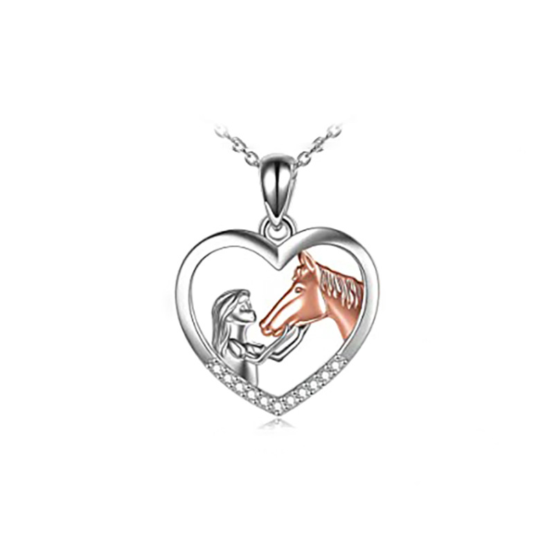 Internet celebrity jewelry European and American fashion heart-shaped micro-inlaid necklace girl and horse two-color pendant