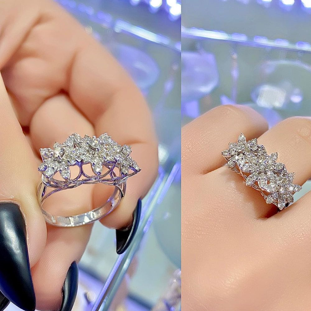 Internet celebrity live broadcast fashion jewelry full diamond zircon flower ring light luxury temperament all-match index finger ring
