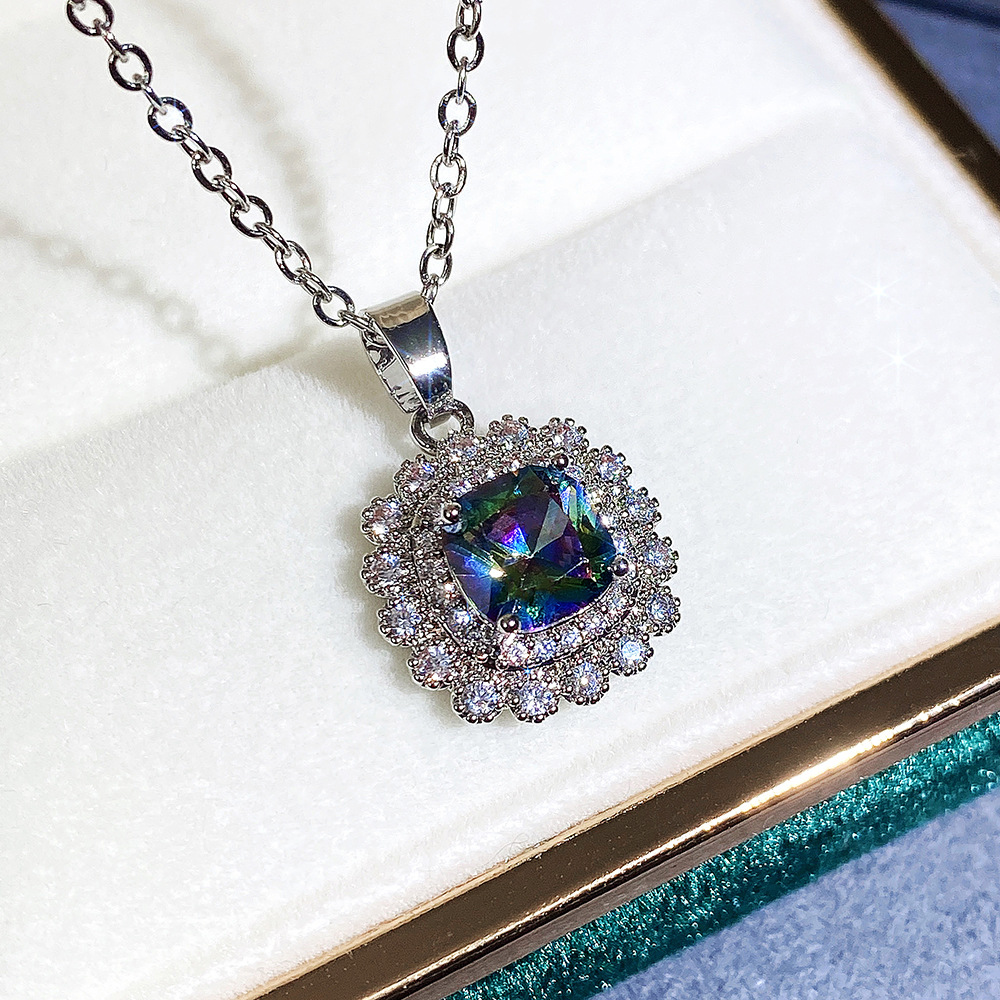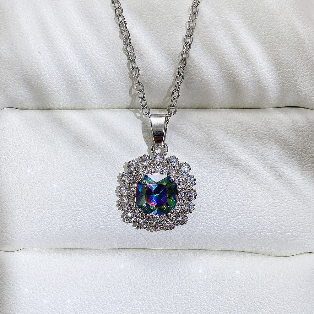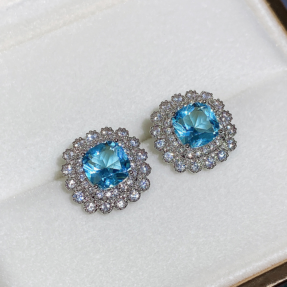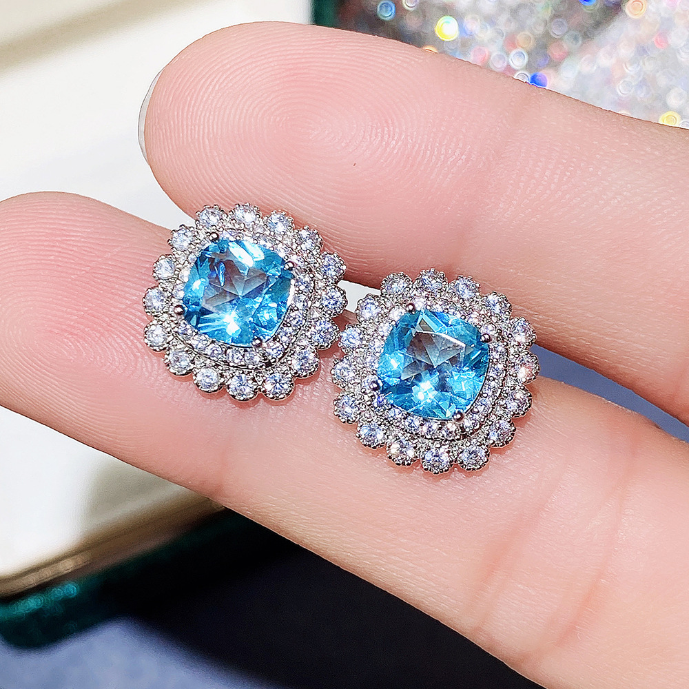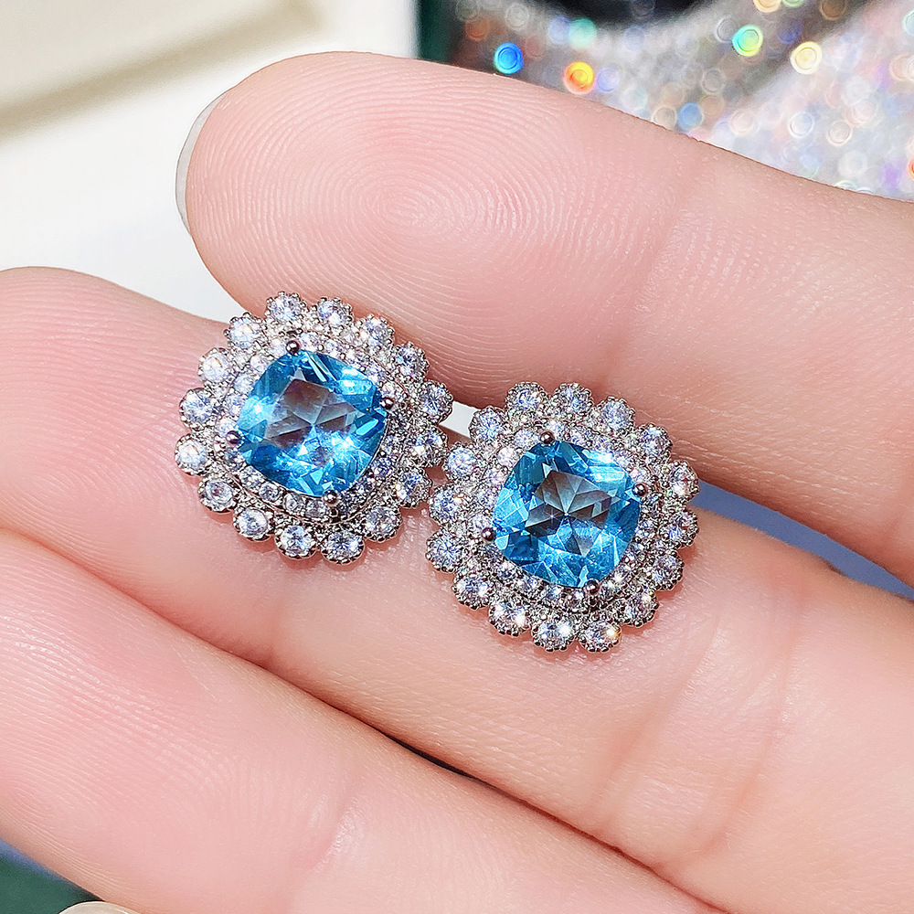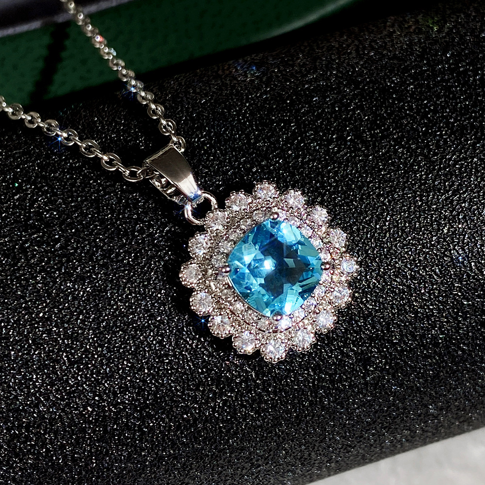 Internet celebrity live jewelry set luxury colored zircon necklace sea blue earrings and ring set