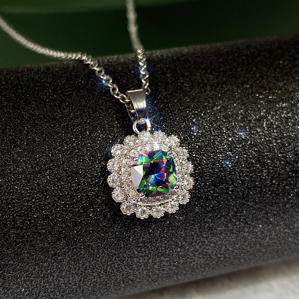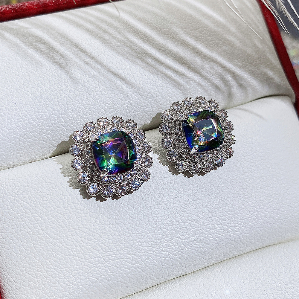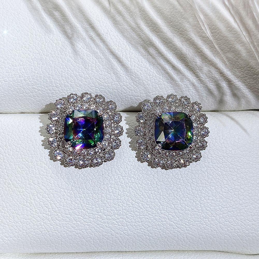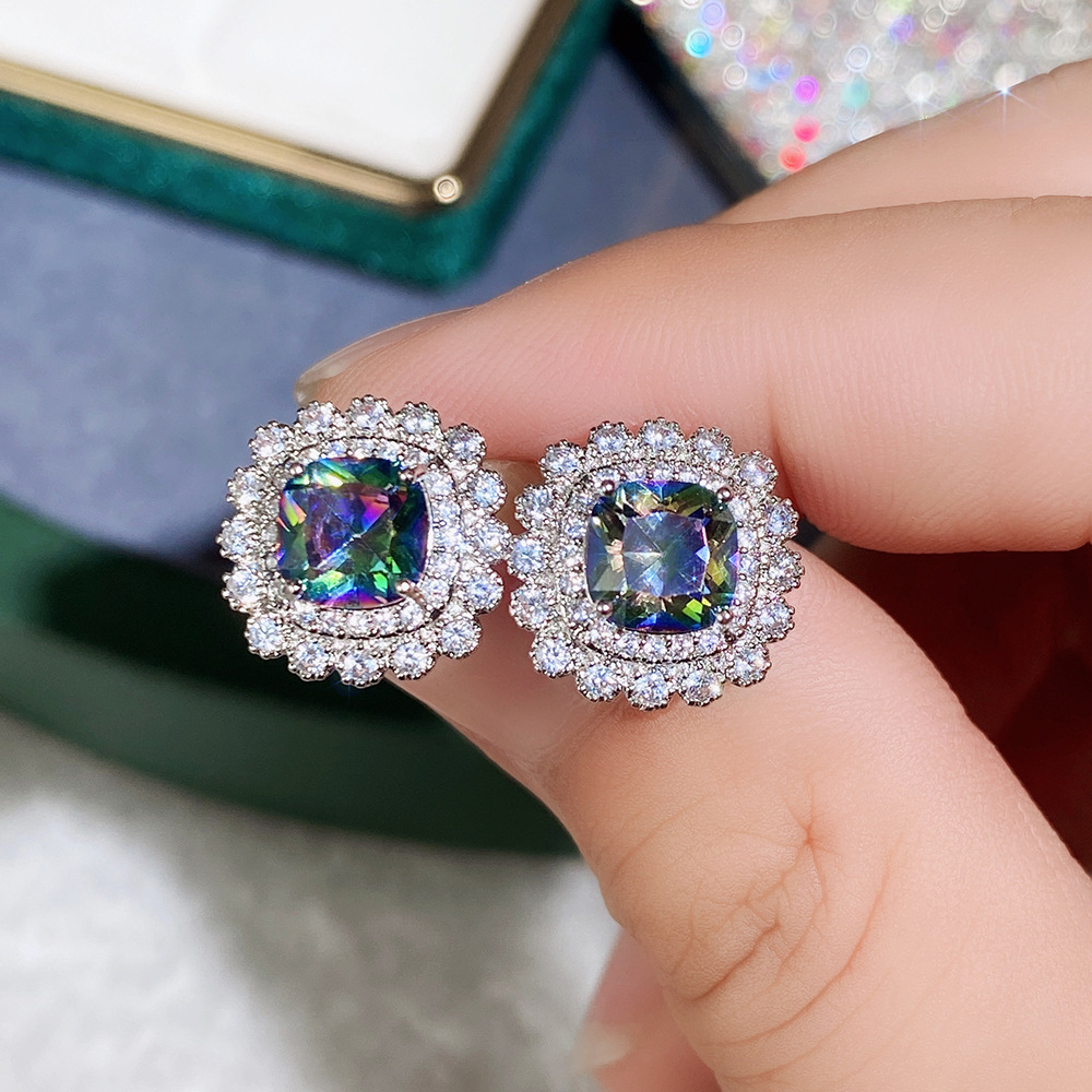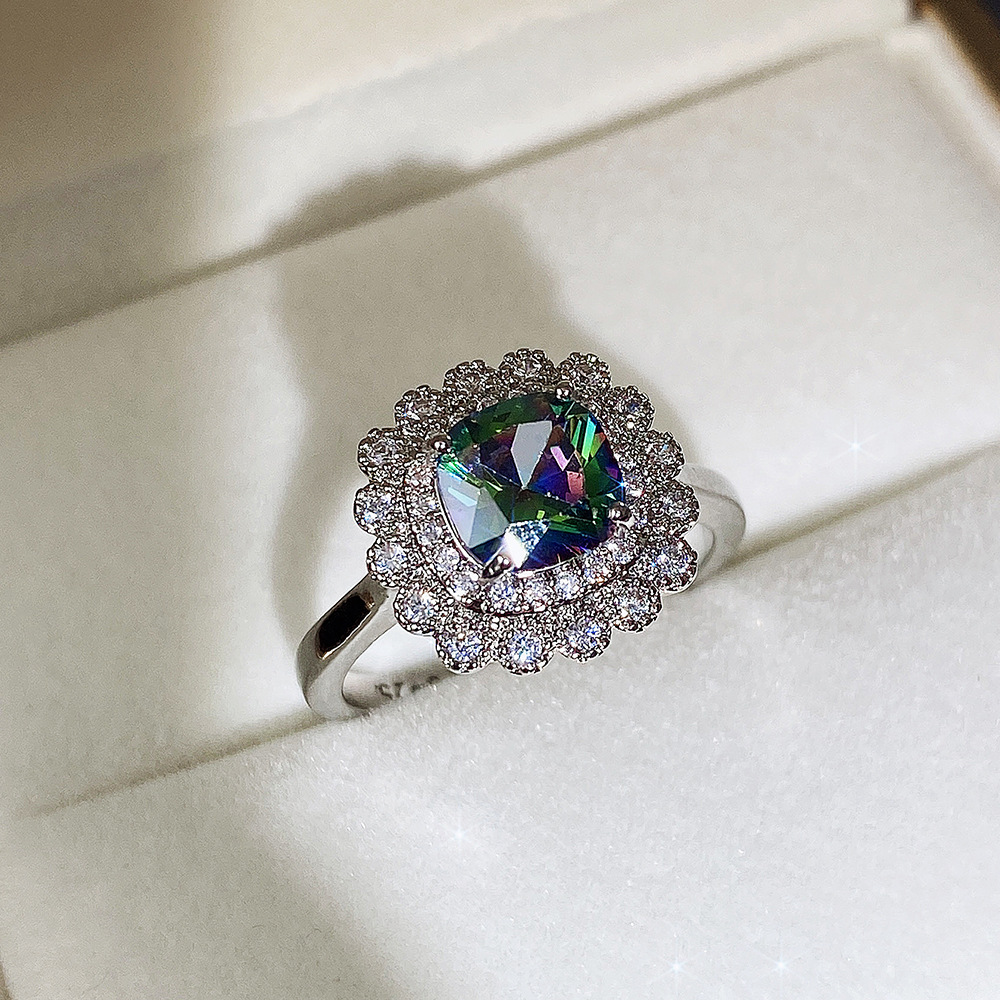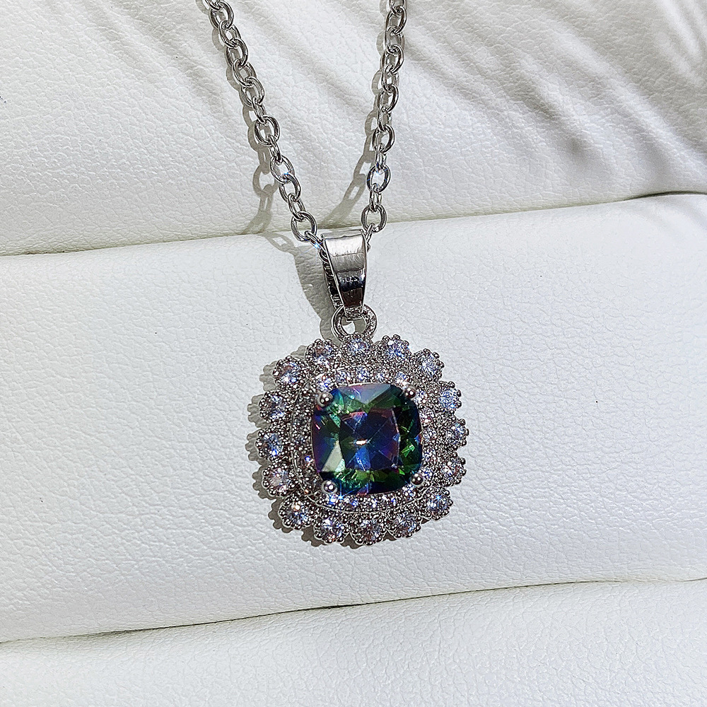 Internet celebrity live jewelry set luxury colored zircon necklace sea blue earrings and ring set
