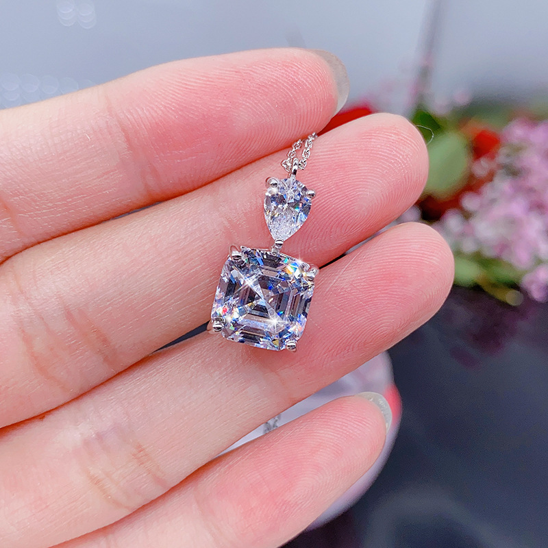 Internet celebrity trend necklace princess square colored gem pink zircon necklace elegant women's clavicle chain