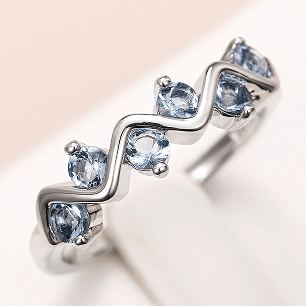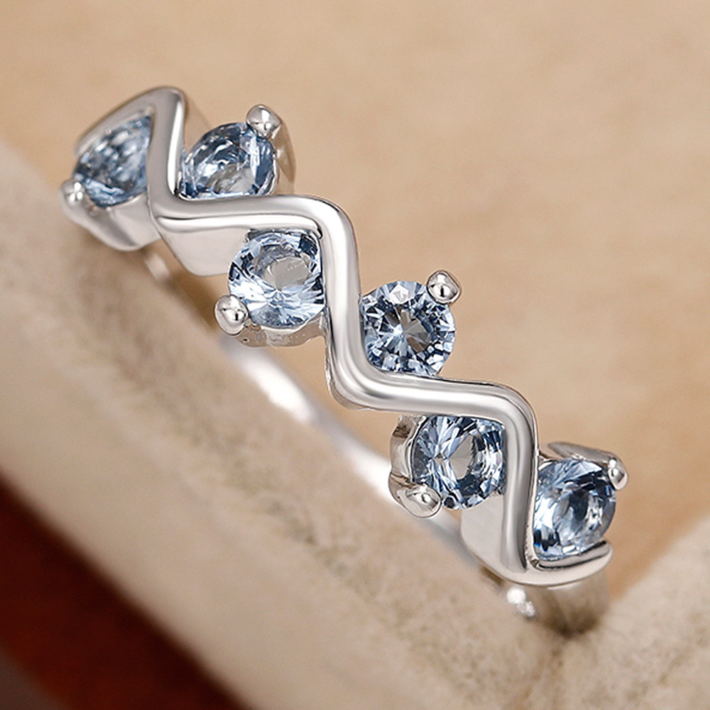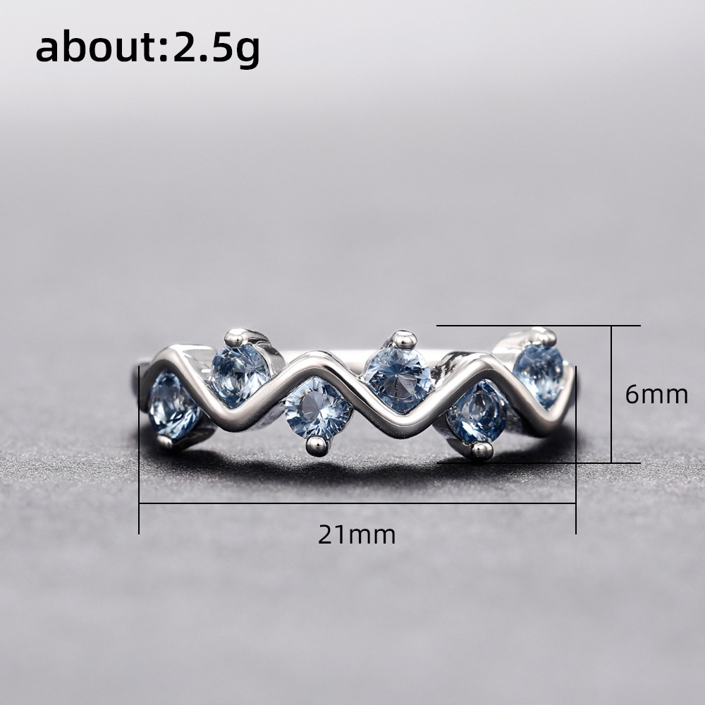 Internet celebrity wave zircon ring female niche design copper inlaid blue zircon personality ring fashion accessories wholesale