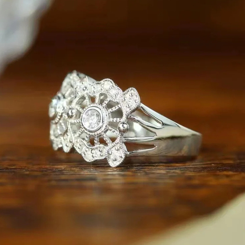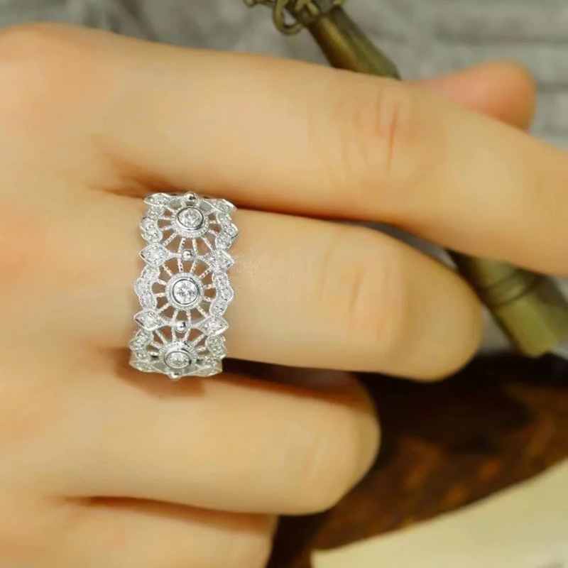 Micro-inlaid celebrity style classic all-match popular ring six-claw zircon wedding ring European and American style light luxury ring