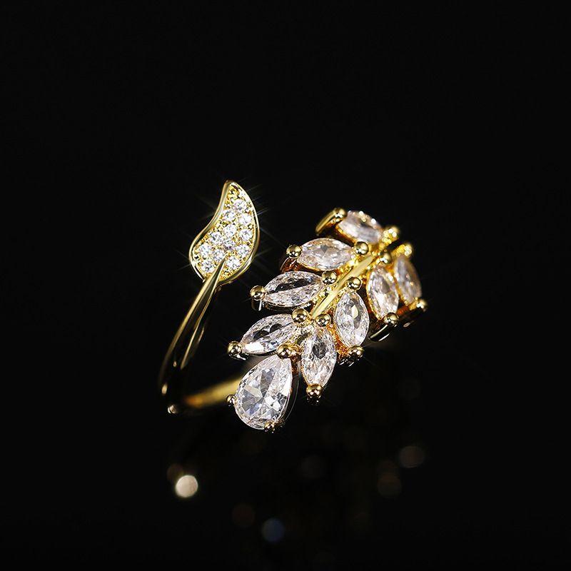 Japan and South Korea's Dongdaemun new super flash zircon leaf ring female personality atmosphere opening adjustable ring
