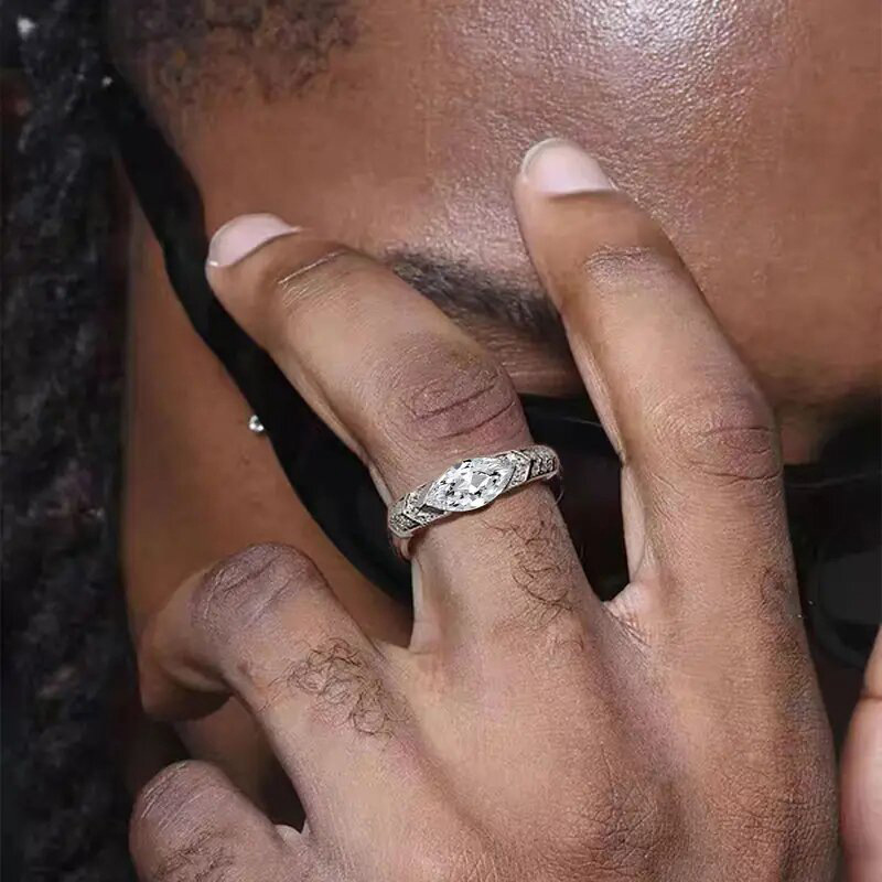 Japanese and Korean cool style ring unisex horse eye geometric ring niche design micro inlaid metal