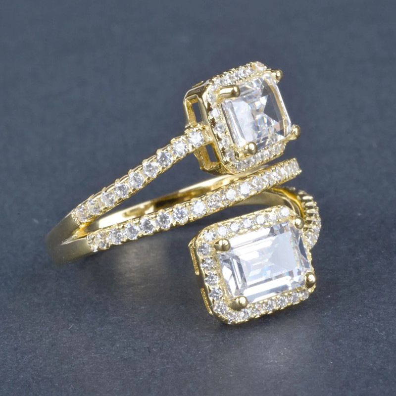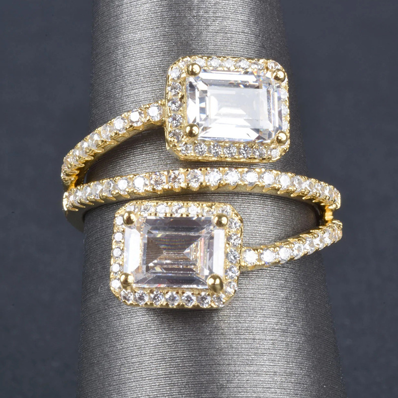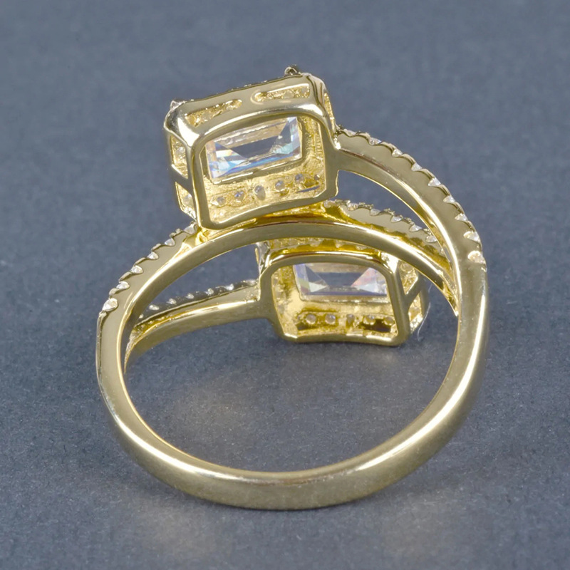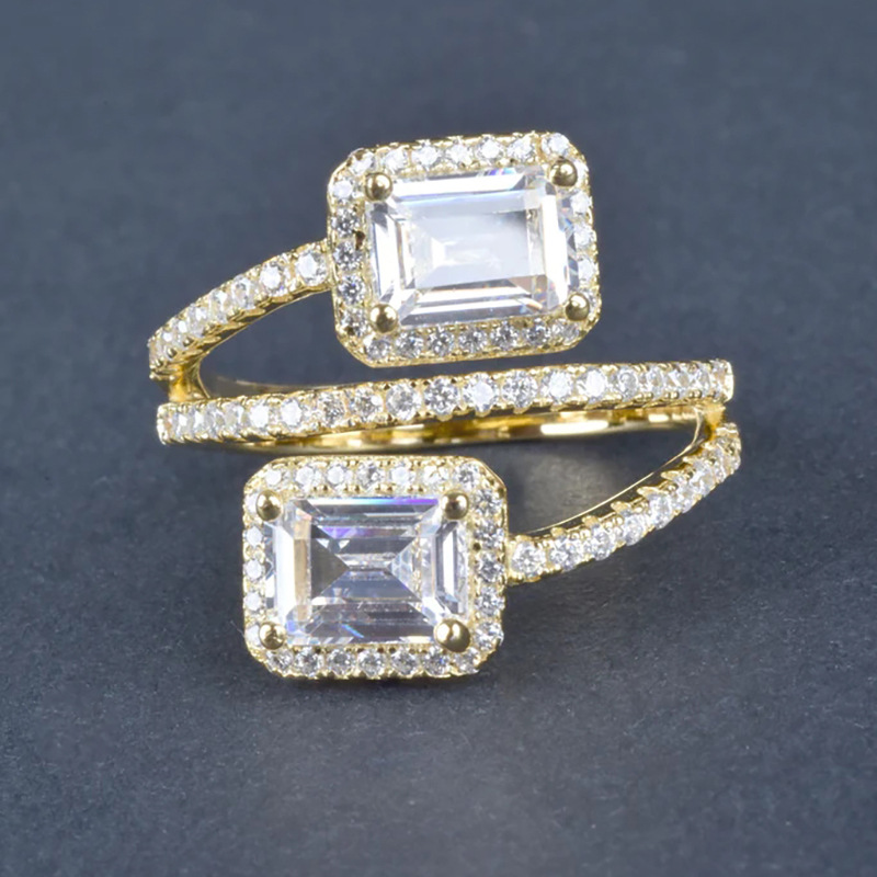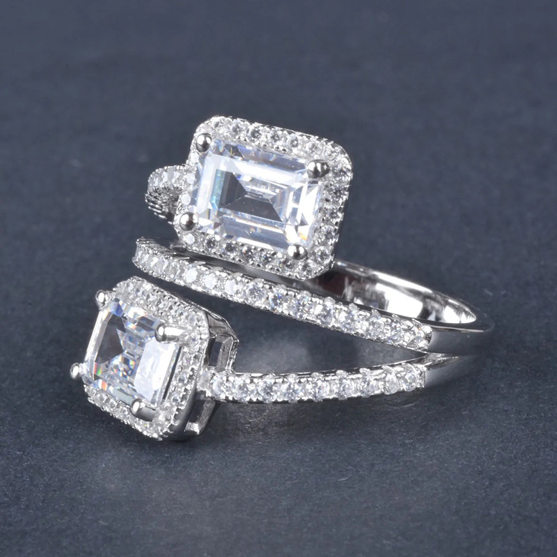 Classic four-claw imitation zircon micro-inlaid ring women's double row two-color twist arm ring engagement wedding ring women