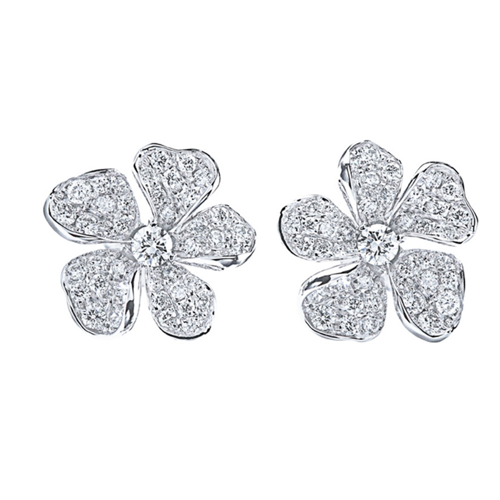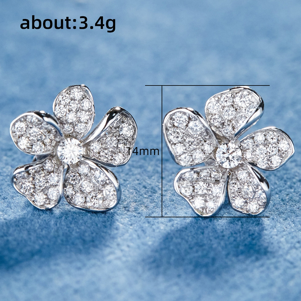 Japanese and Korean fresh flower earrings shining zircon flower earrings Xiaohongshu recommended flower earrings for women