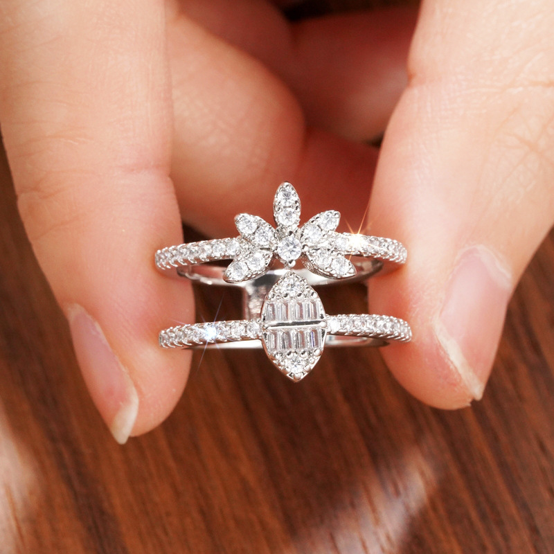 European and American luxury design ring fashionable temperament horse eye zircon ring multi-layer hollow design index finger ring