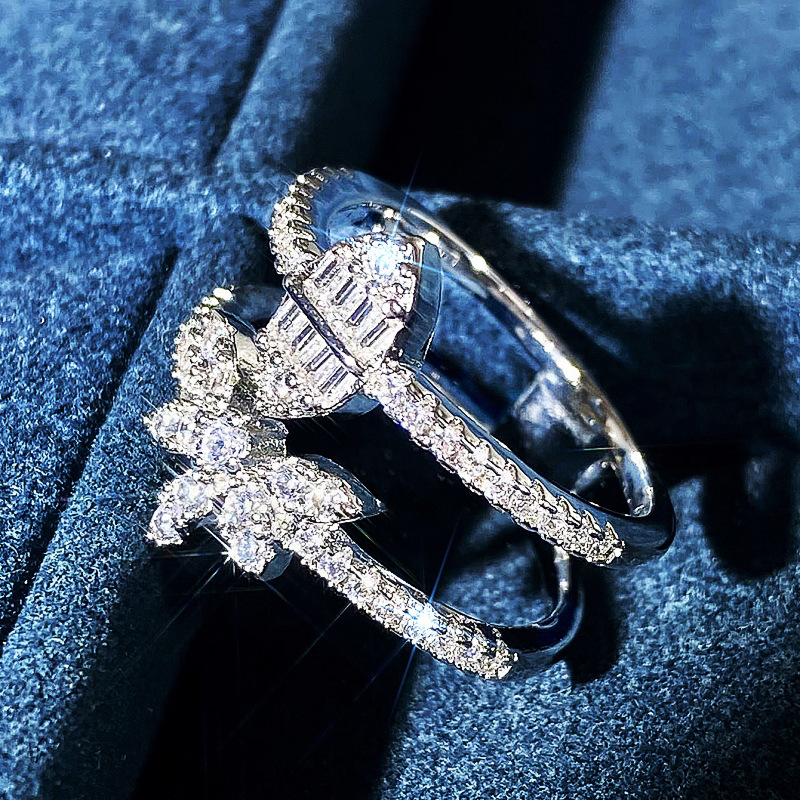 Classic four-claw imitation zircon micro-inlaid ring women's double row two-color twist arm ring engagement wedding ring women
