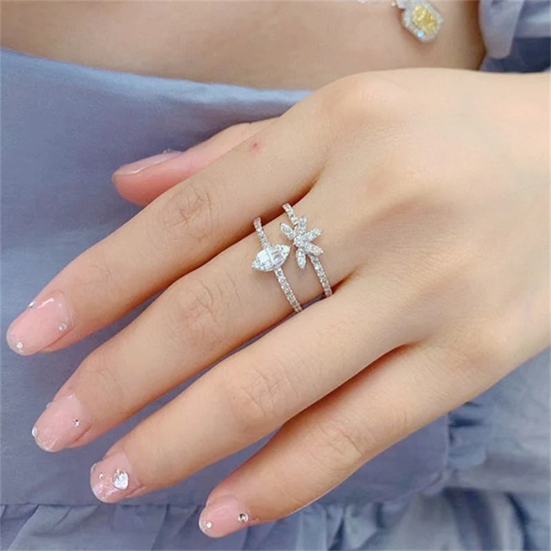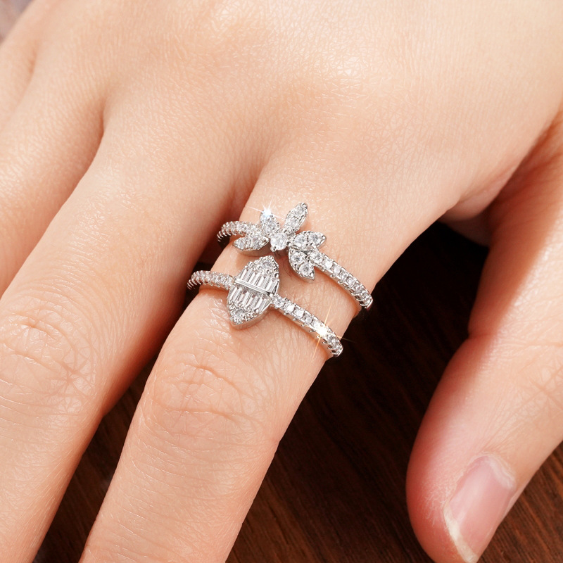 New best-selling super flash ring tree branch bud four-claw inlaid ring light luxury wedding ring for girlfriend