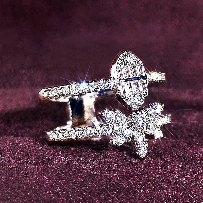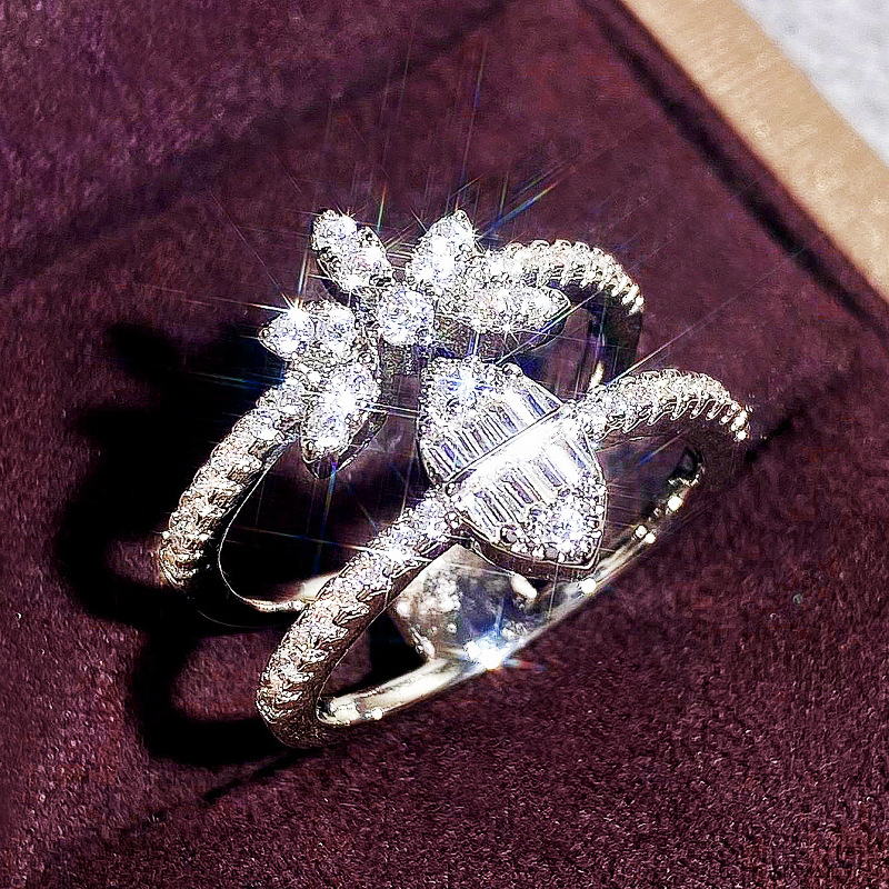 New zircon ring hollow cross four claws fashion design proposal wedding ring birthday gift ring