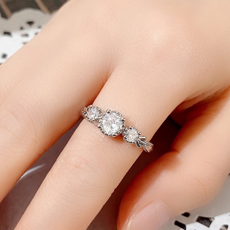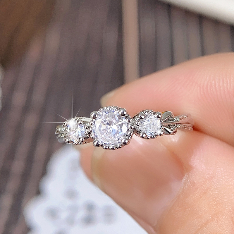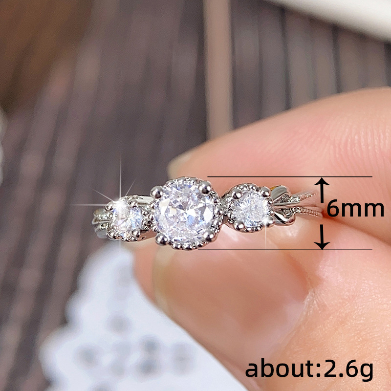 Micro-inlaid celebrity style classic all-match popular ring six-claw zircon wedding ring European and American style light luxury ring