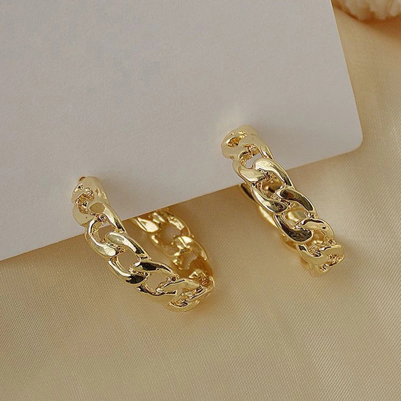 Japanese and Korean hollow chain earrings simple chain metal ring earrings personality niche temperament earrings