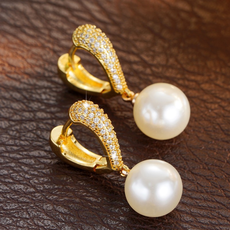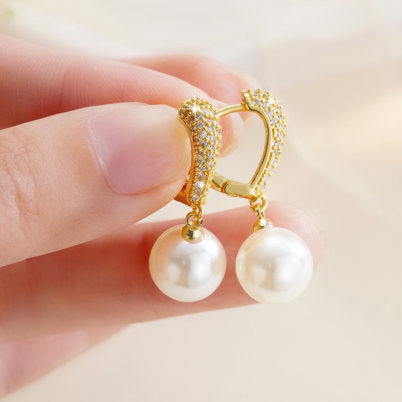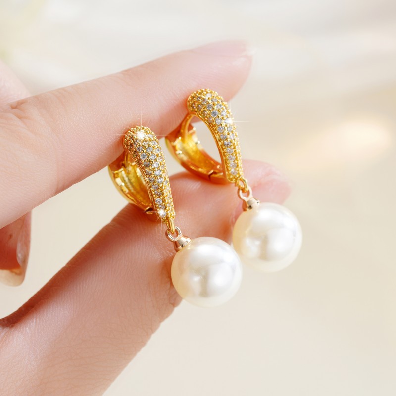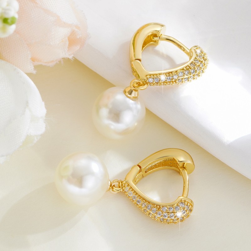 Japanese and Korean light luxury high-end pearl earrings heart-shaped inlaid zirconium ear clip earrings celebrity party earrings for women