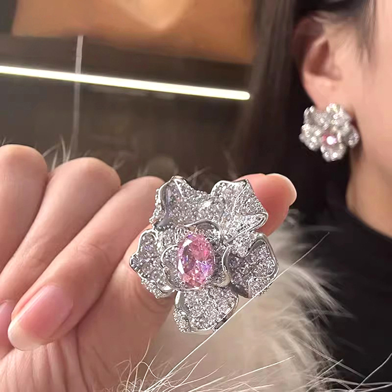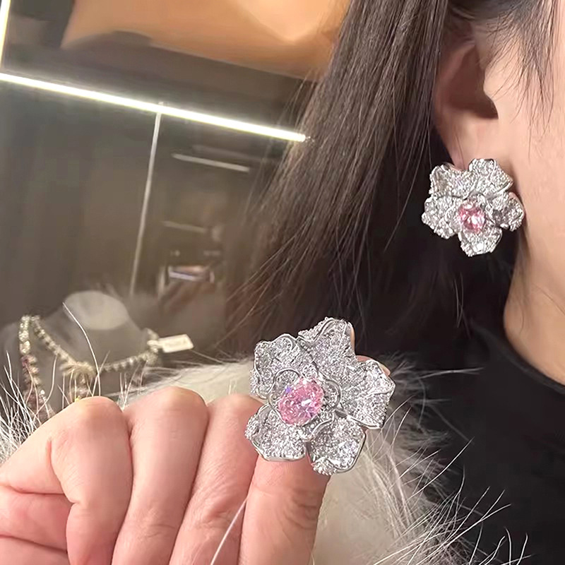 Japanese and Korean live broadcast light luxury earrings for women flower lily jewelry full diamond geometric design jewelry