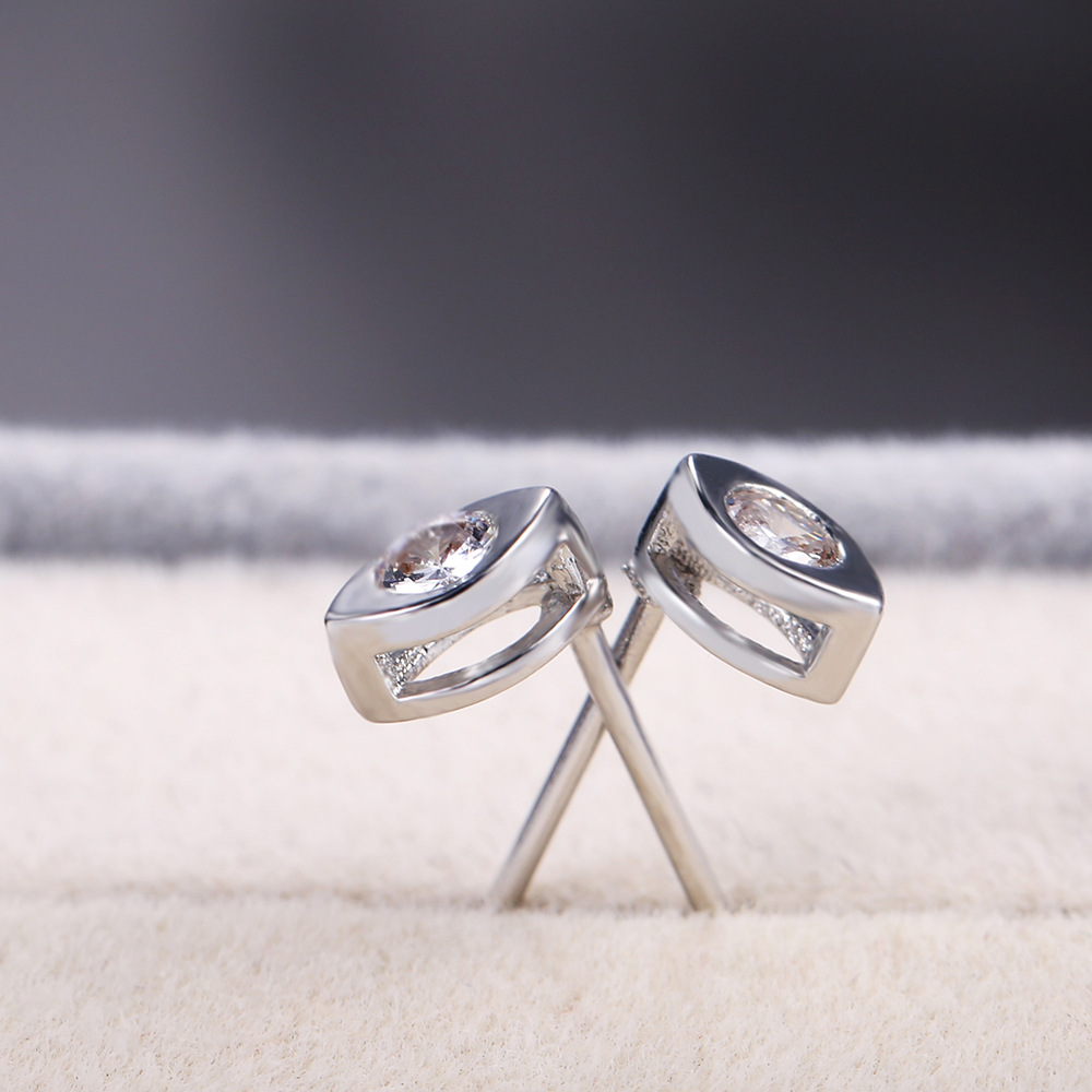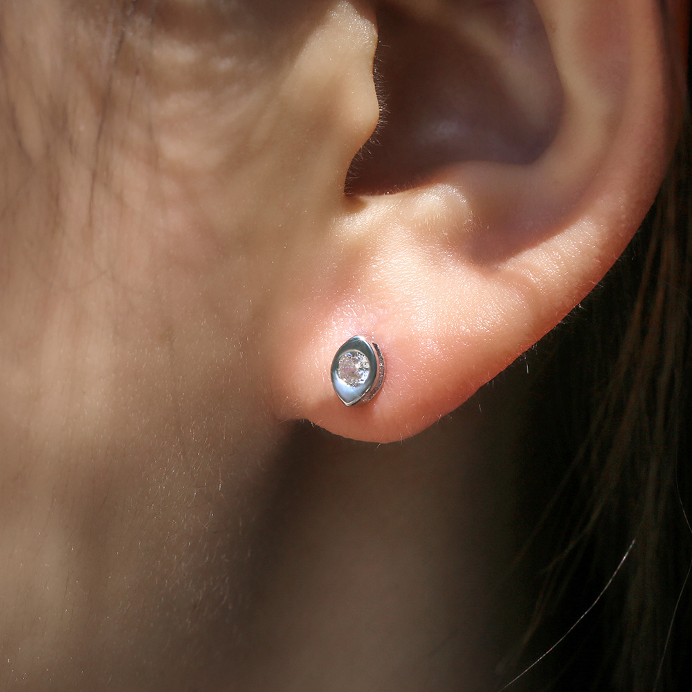 Japanese and Korean minimalist girls' personality all-match zircon spindle earrings real gold color-preserving daily clothing accessories