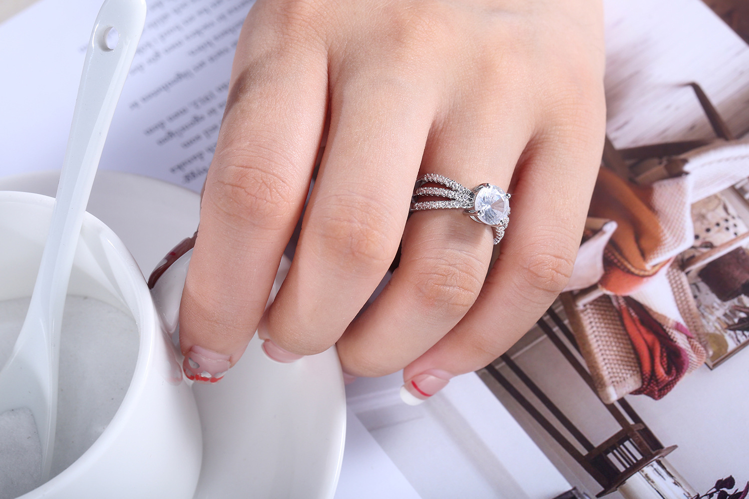 New zircon ring hollow cross four claws fashion design proposal wedding ring birthday gift ring