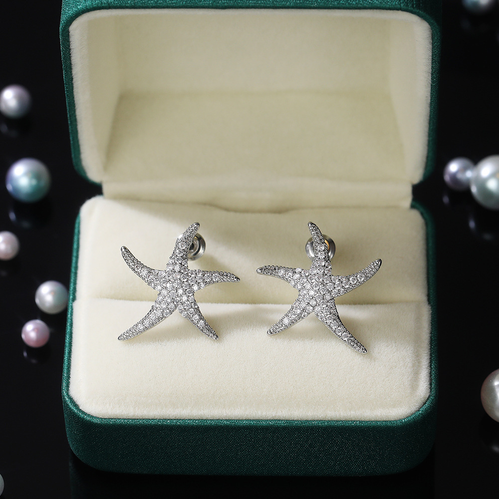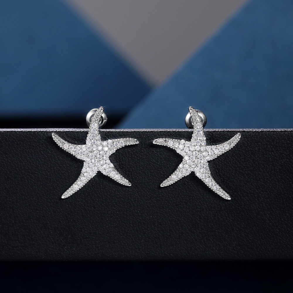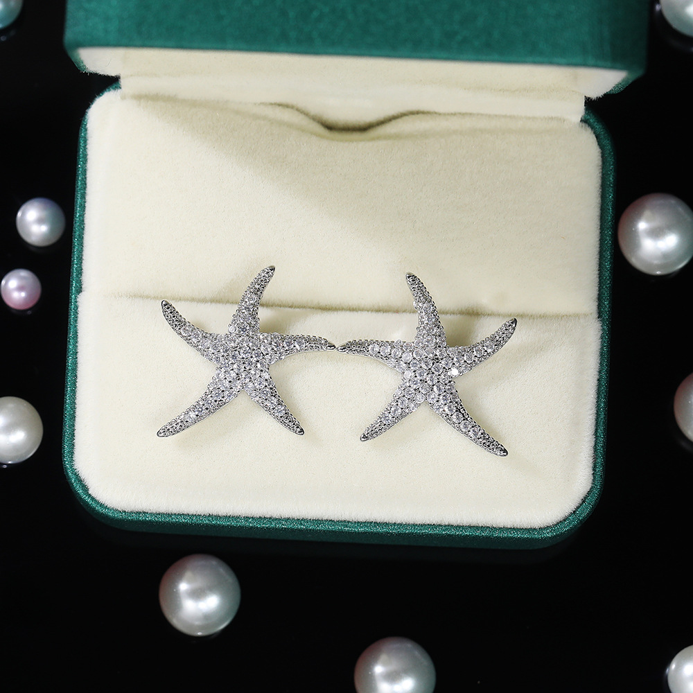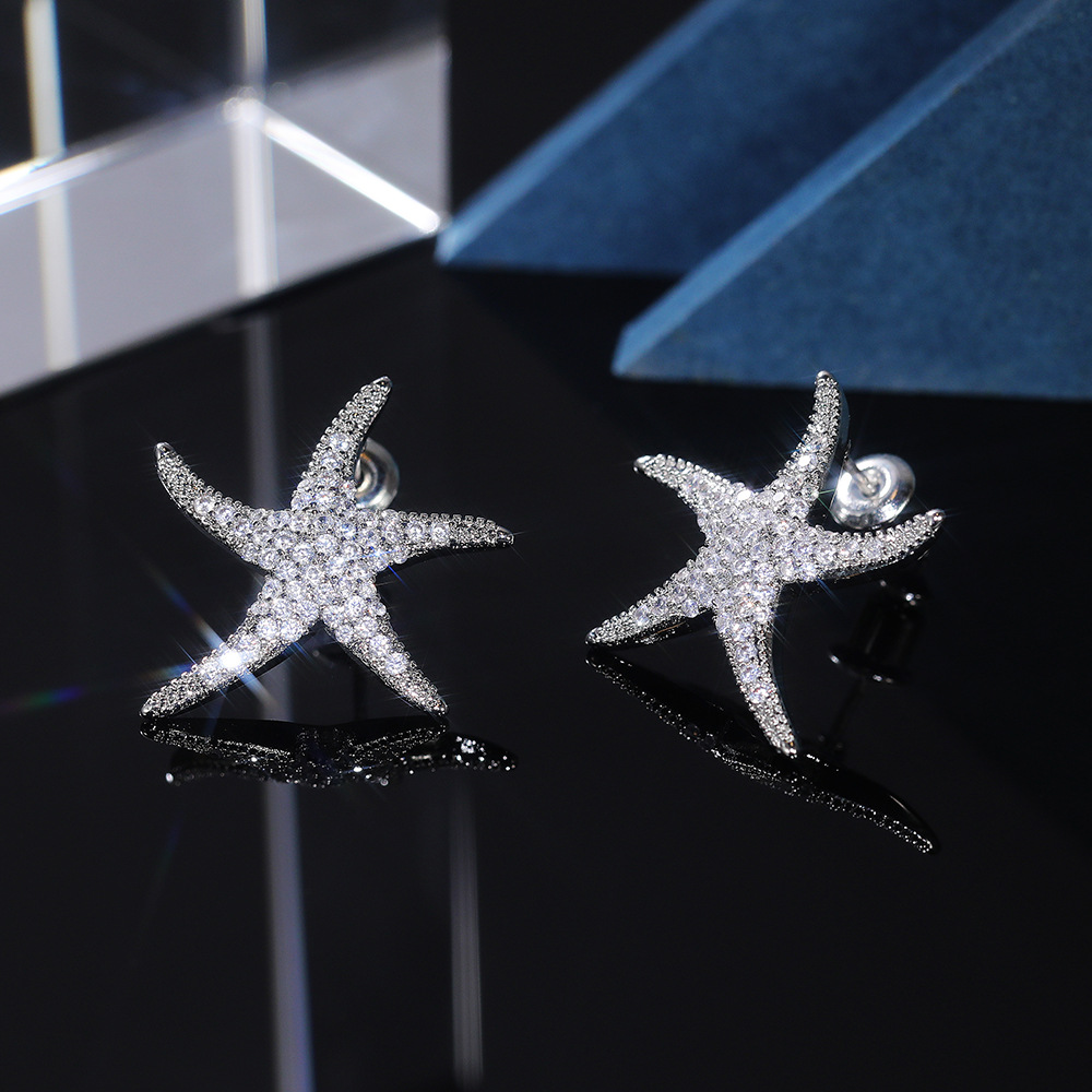 Japanese and Korean new sweet full diamond zircon starfish earrings fashionable all-match ladies earrings ear jewelry wholesale