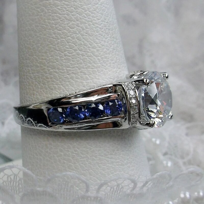 New zircon ring hollow cross four claws fashion design proposal wedding ring birthday gift ring