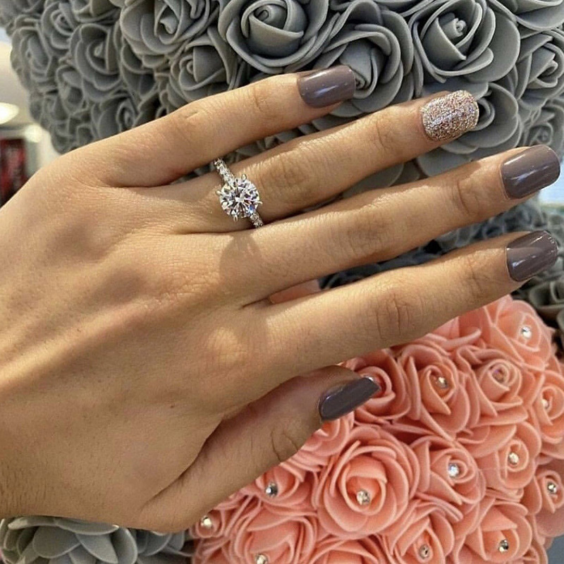 Micro-inlaid celebrity style classic all-match popular ring six-claw zircon wedding ring European and American style light luxury ring