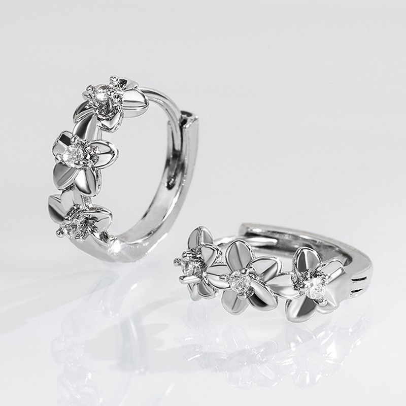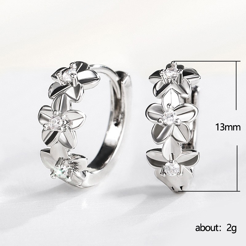 Japanese and Korean small fresh earrings sweet small flowers inlaid with diamonds and zircon earrings ladies fashion flower accessories wholesale