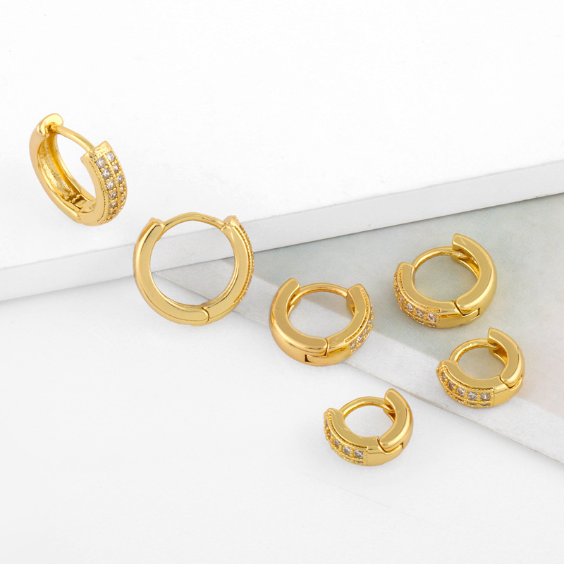 Japanese and Korean style double row diamond small earrings zircon ear buckle female personality simple fashion temperament round earrings erv78