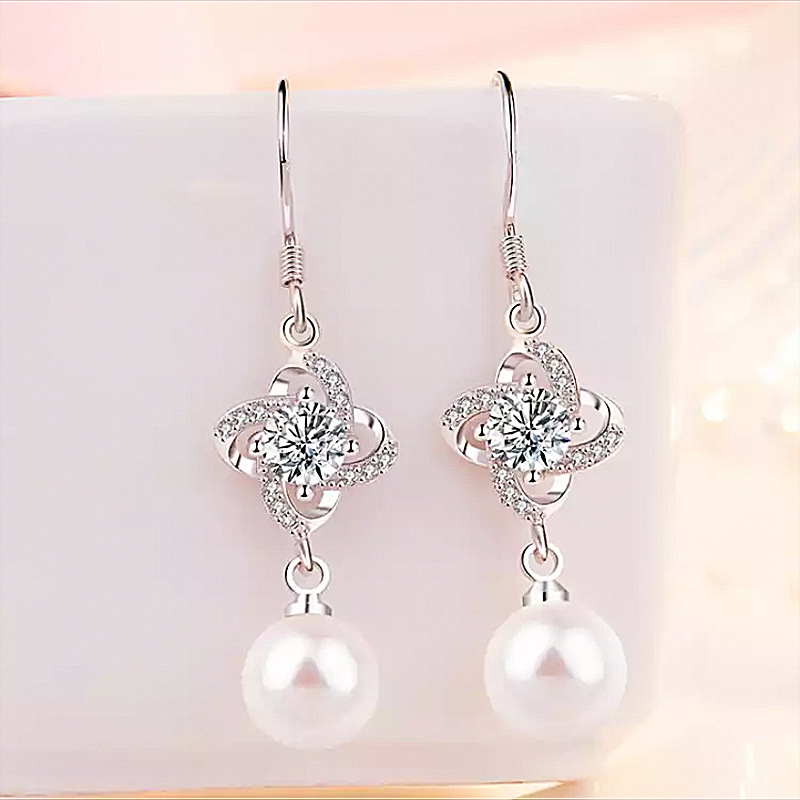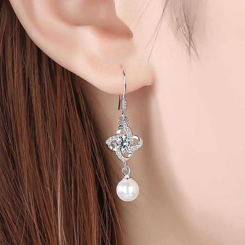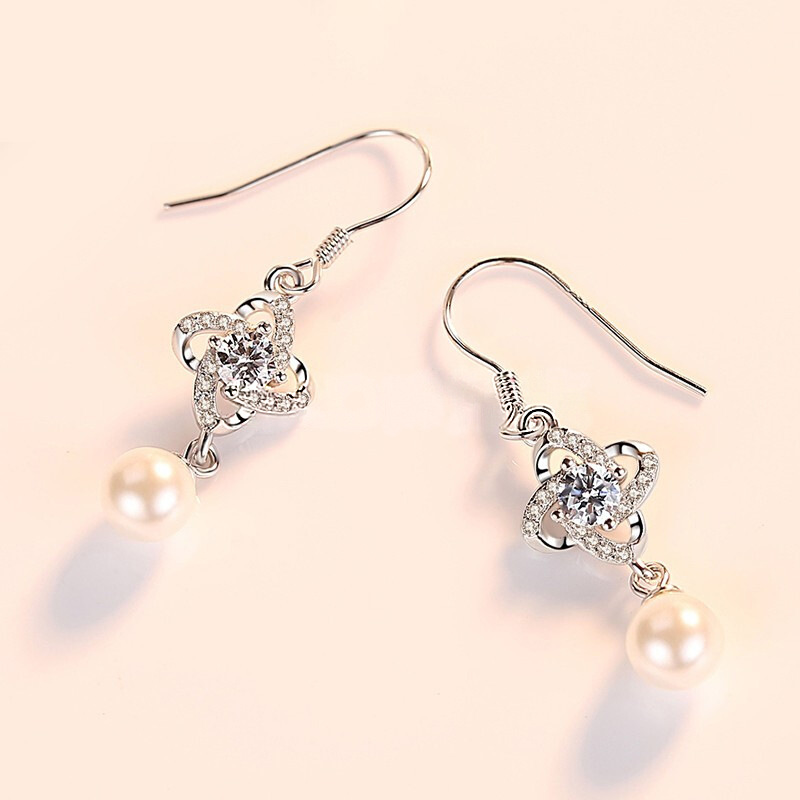 Japanese and Korean style fashion earrings, sweet flower imitation pearl earrings, simple personality geometric ear hooks, earrings