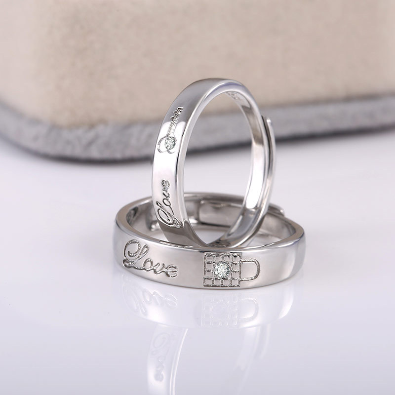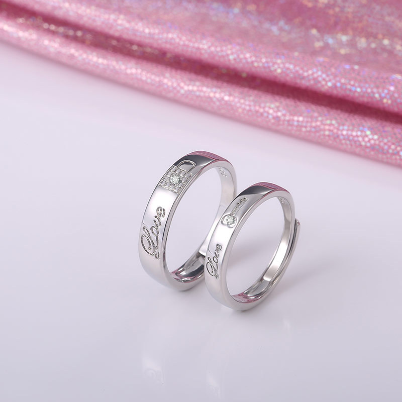 Japanese and Korean style hot selling new classic couple's white gold plated zircon key and lock ring lock love