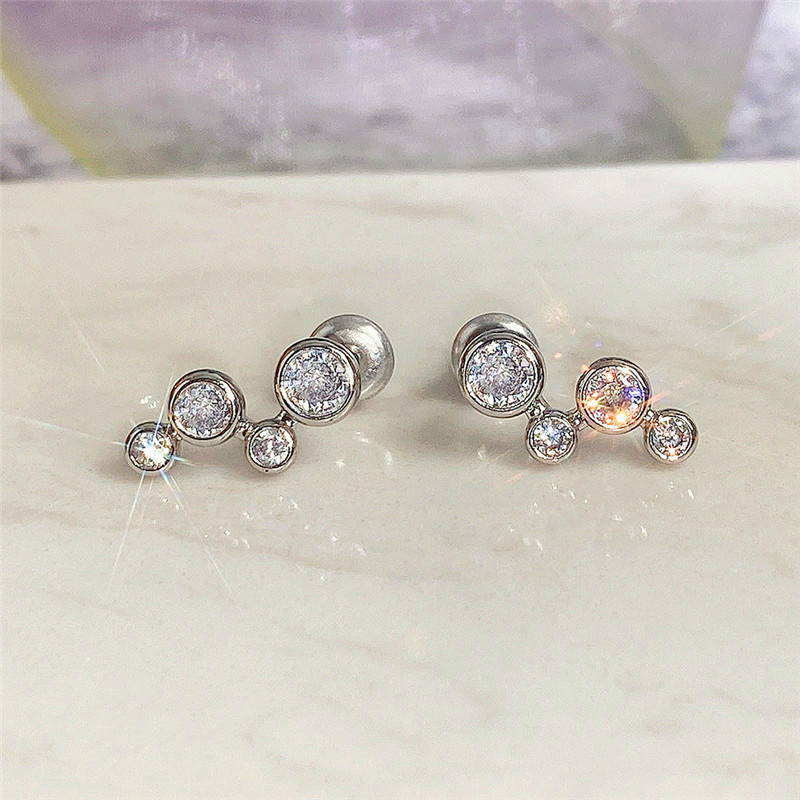 Japanese and Korean style new earrings, simple and luxurious geometric circle ear bone studs, versatile and elegant student earrings