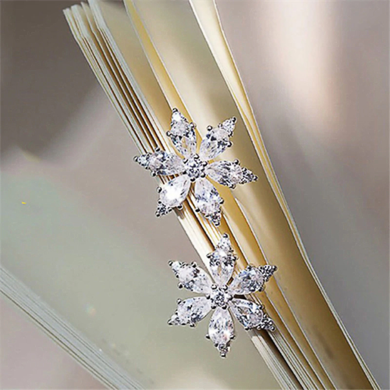 Japanese and Korean style new earrings simple snowflake flower inlaid diamond zircon earrings versatile slim student earrings