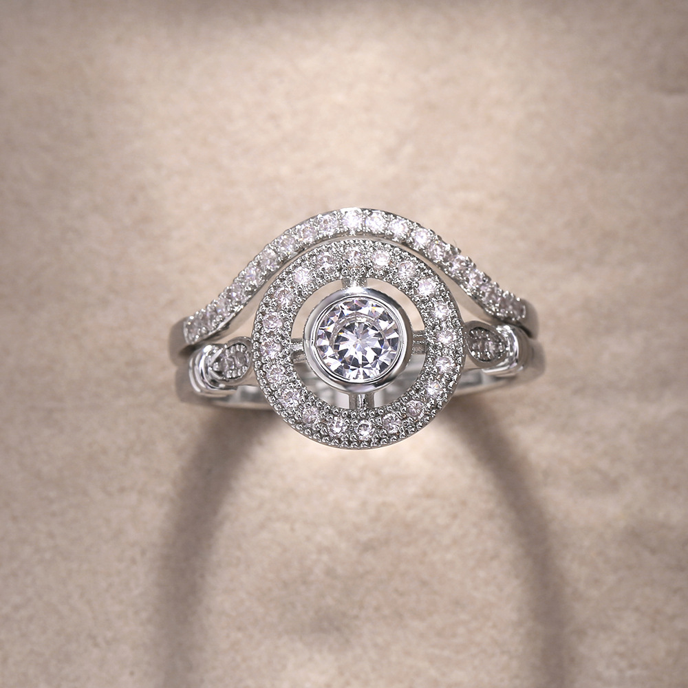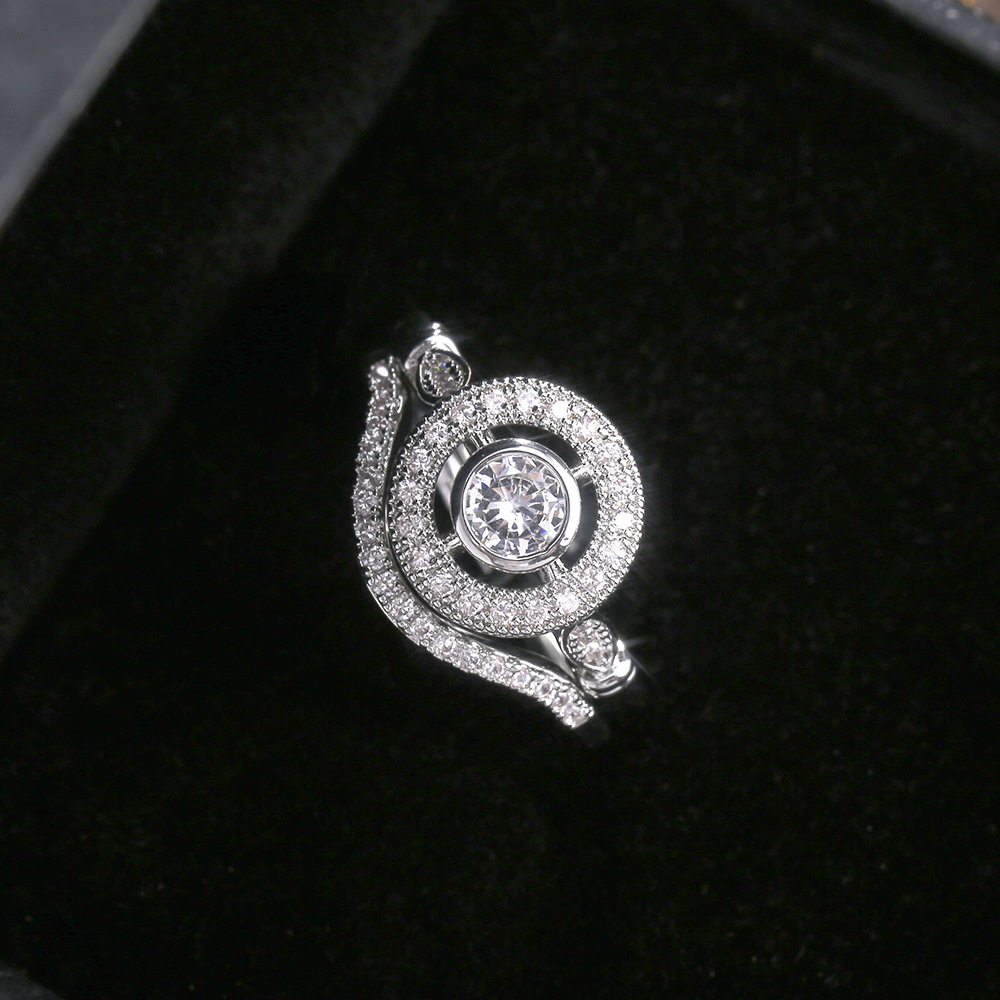 Micro-inlaid celebrity style classic all-match popular ring six-claw zircon wedding ring European and American style light luxury ring